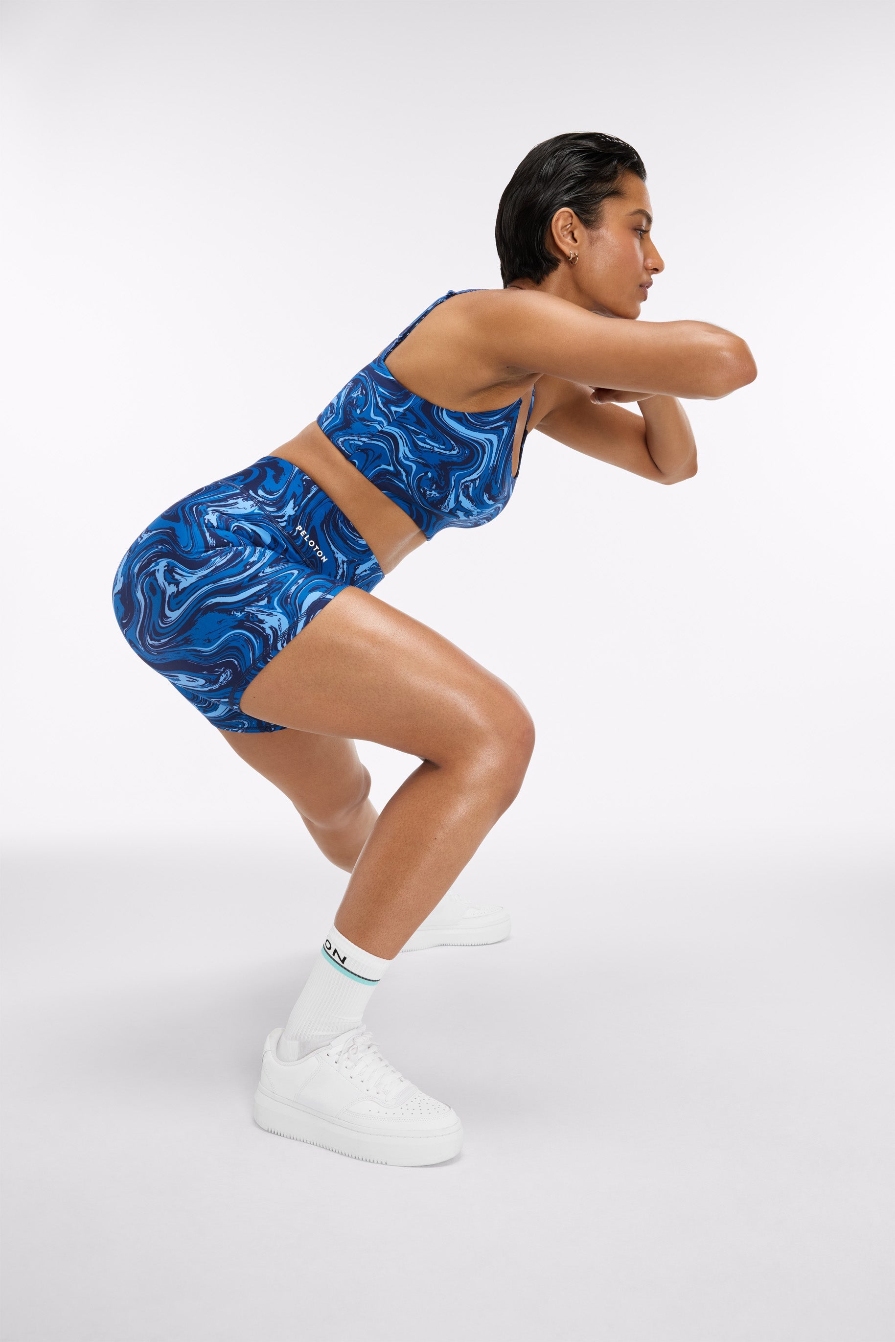Peloton wordmark at right waistband