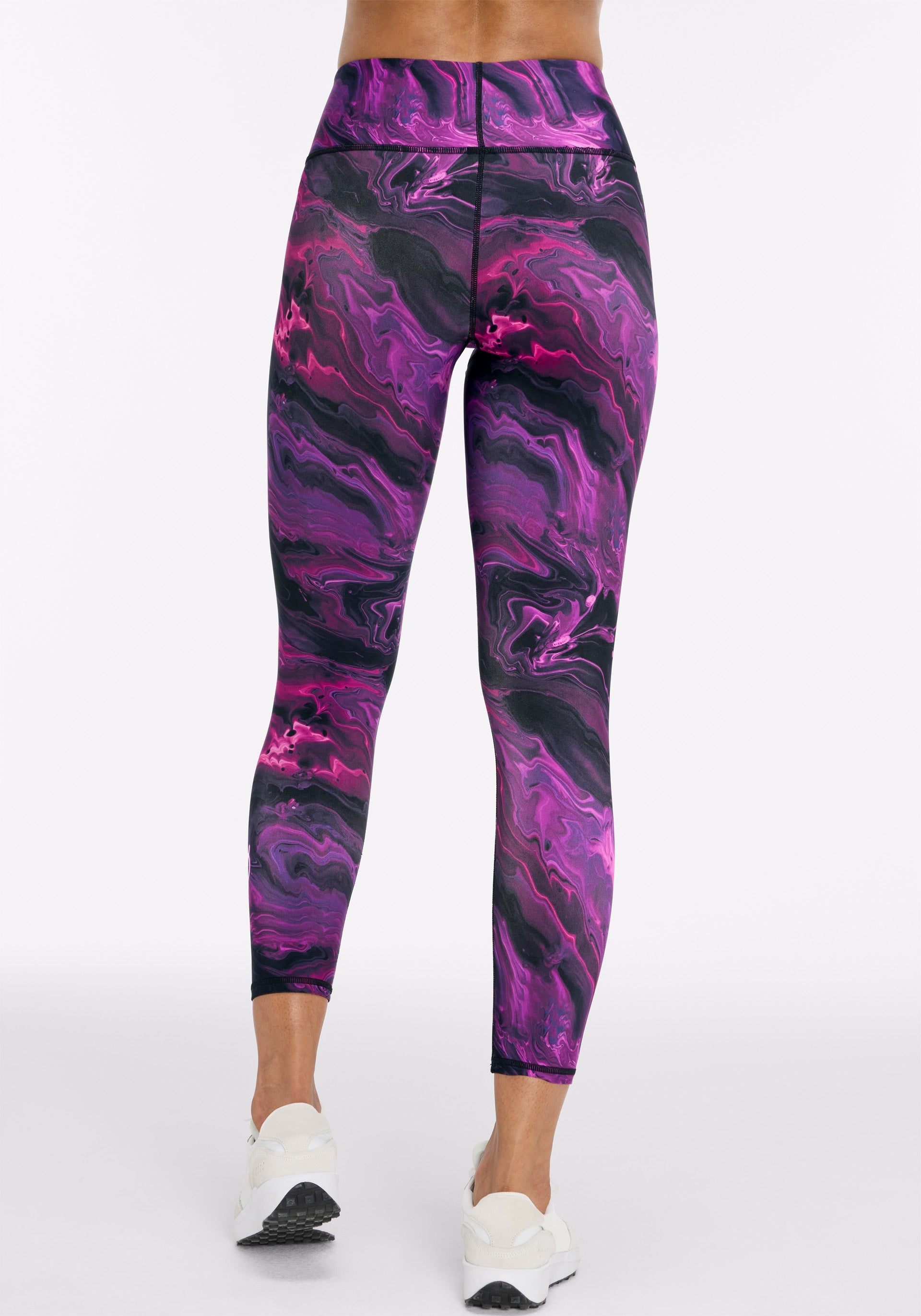 High rise, 29" inseam legging with smoothing compression waistband and DuoKnit fabric that is sweat-wicking and squat-proof with minimized sheerness