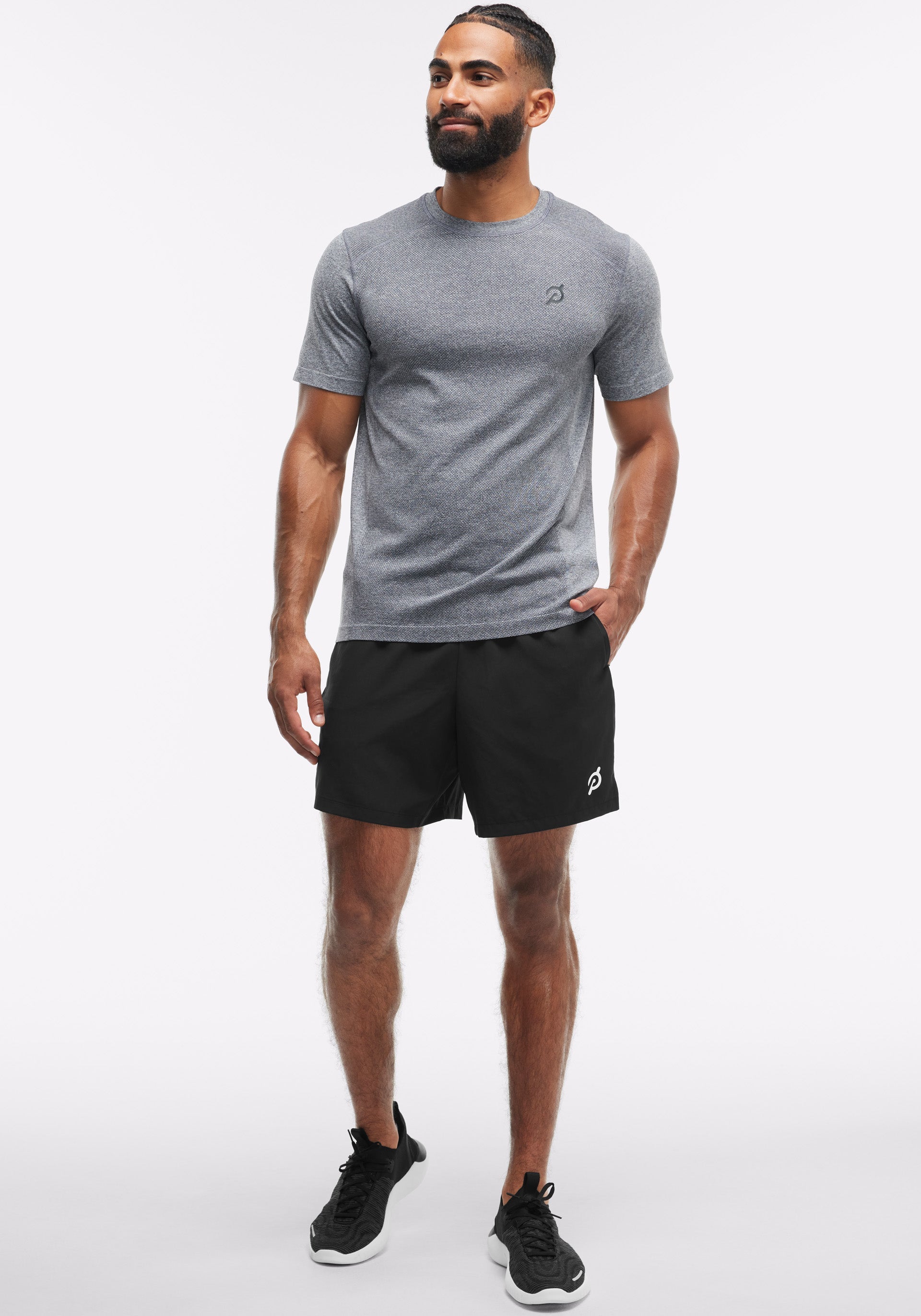 Peloton logo at left leg