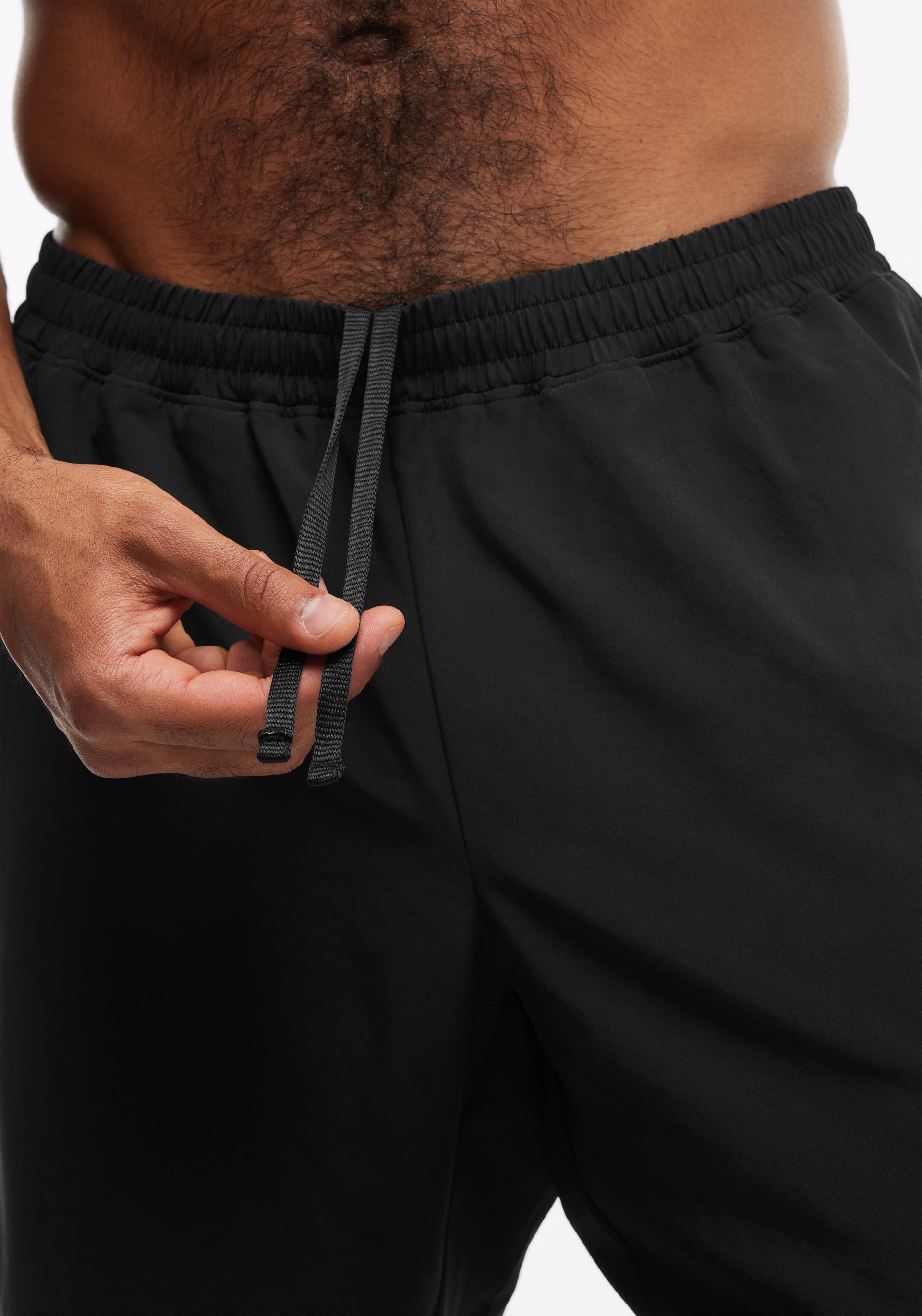7" inseam lined short with encased elastic waistband, functional gusset, back yoke detailing, and on seam front pockets