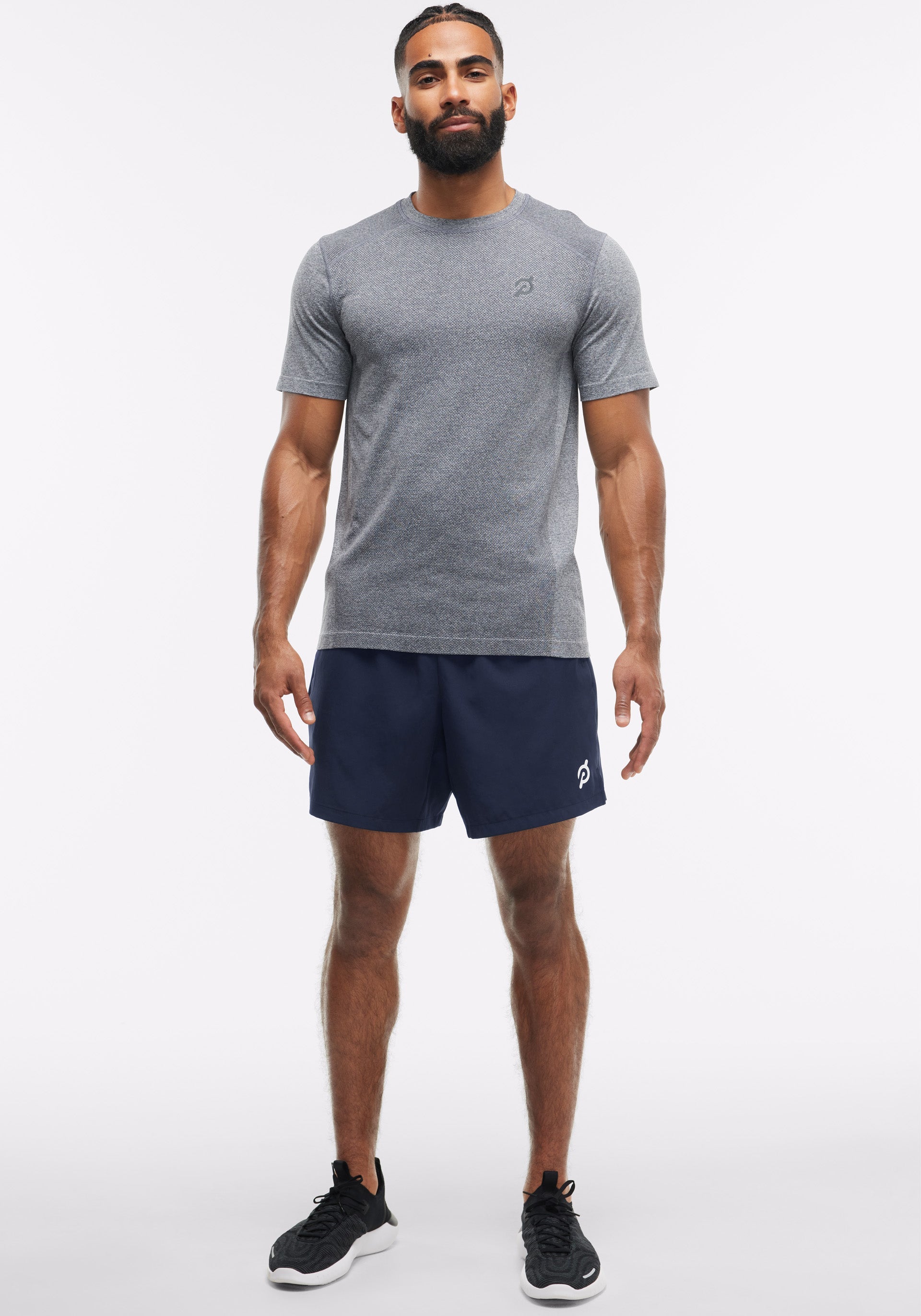 - Peloton logo at left leg