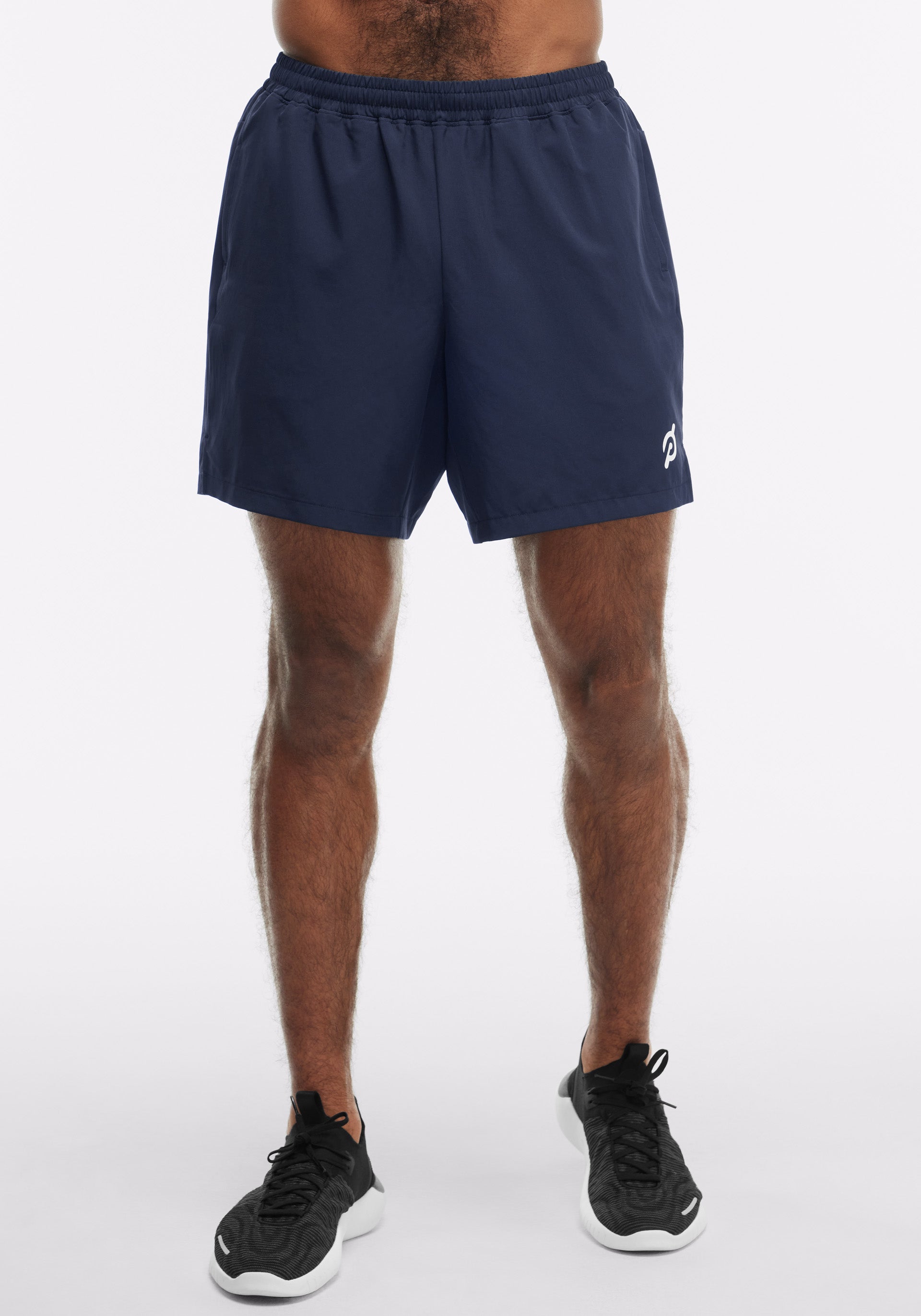 - 7" inseam lined short with encased elastic waistband, functional gusset, back yoke detailing, and on seam front pockets