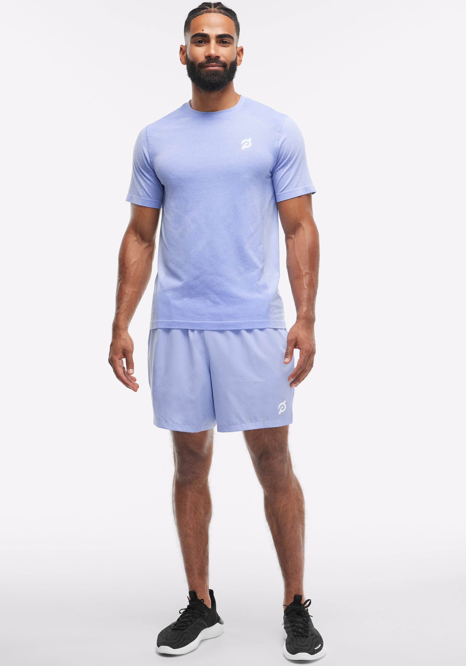 - 7" inseam short with encased elastic waistband, functional gusset, back yoke detailing, and on seam front pockets