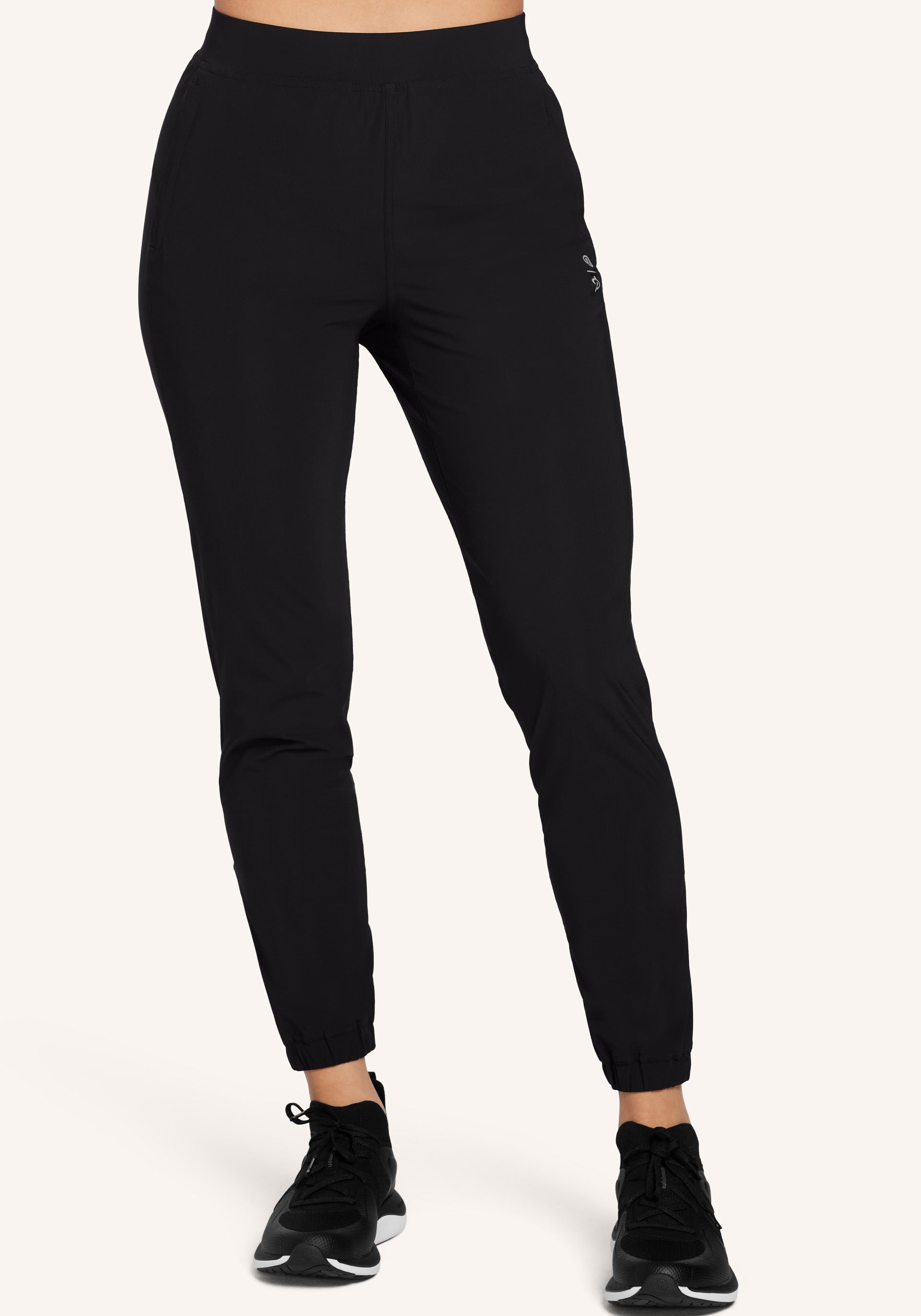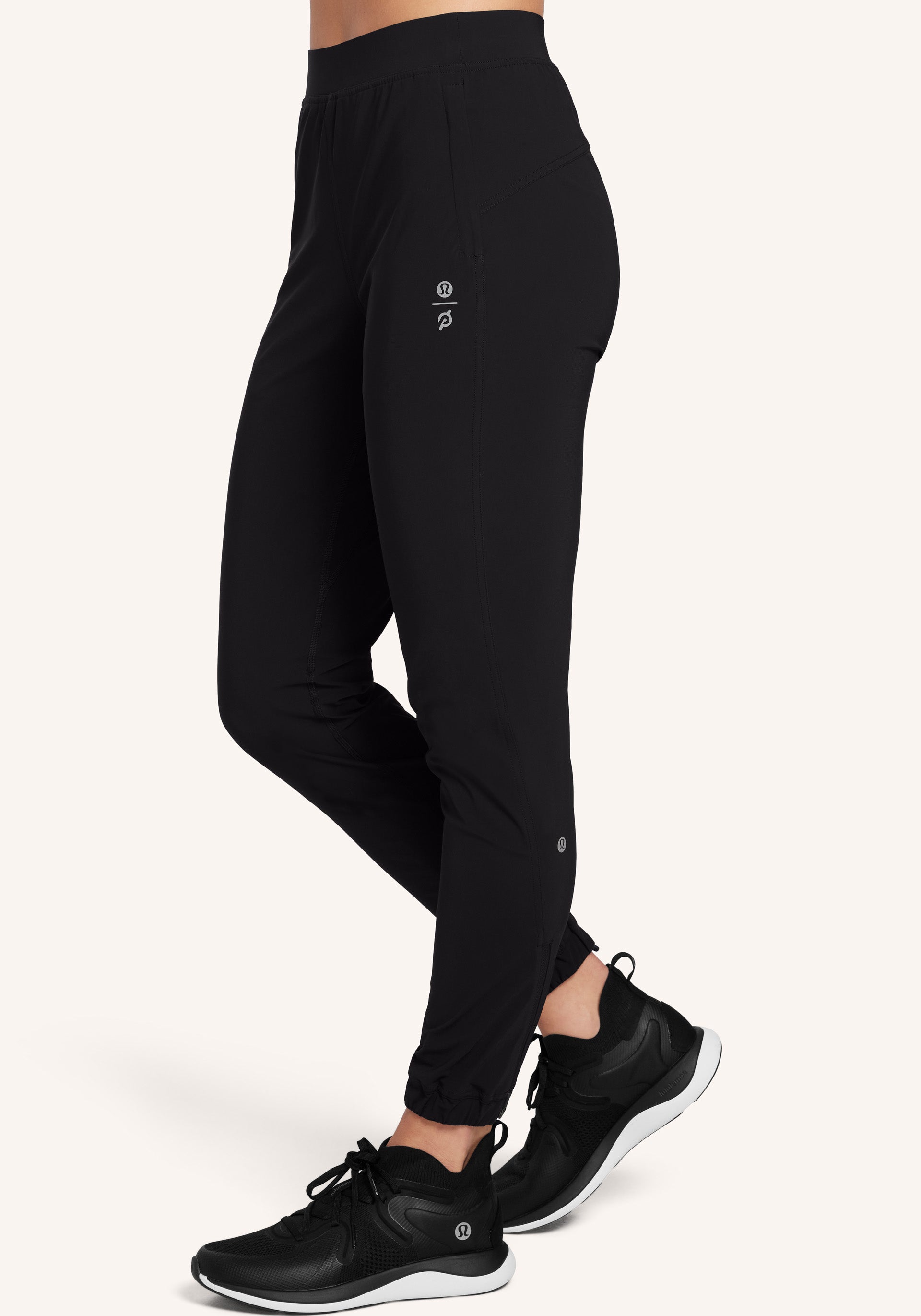 - High Rise, 28” inseam jogger with continuous drawcord, zippers at the cuff, and secure zippered pockets to store your phone and cards