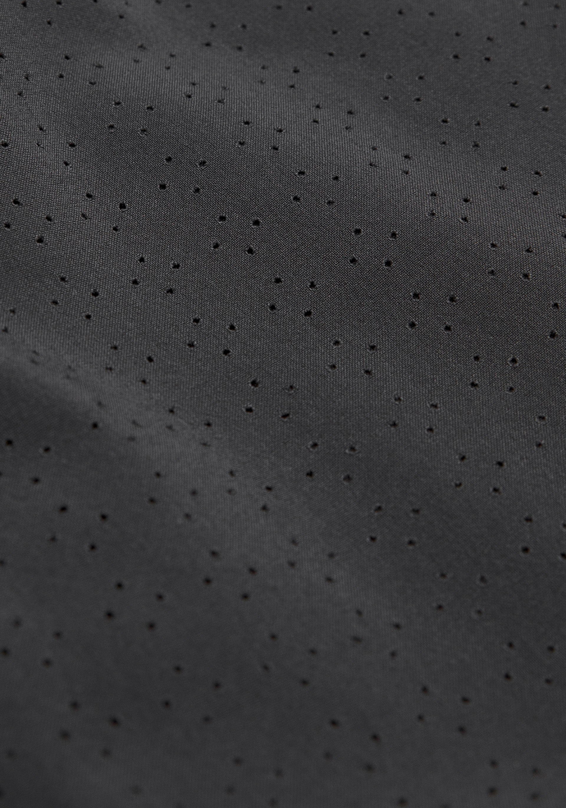 Perforated Swift Fabric is naturally breathable with four-way stretch, sweat-wicking capabilities, and quick-drying technology. 100% of the polyester in this fabric is recycled (excluding trims)