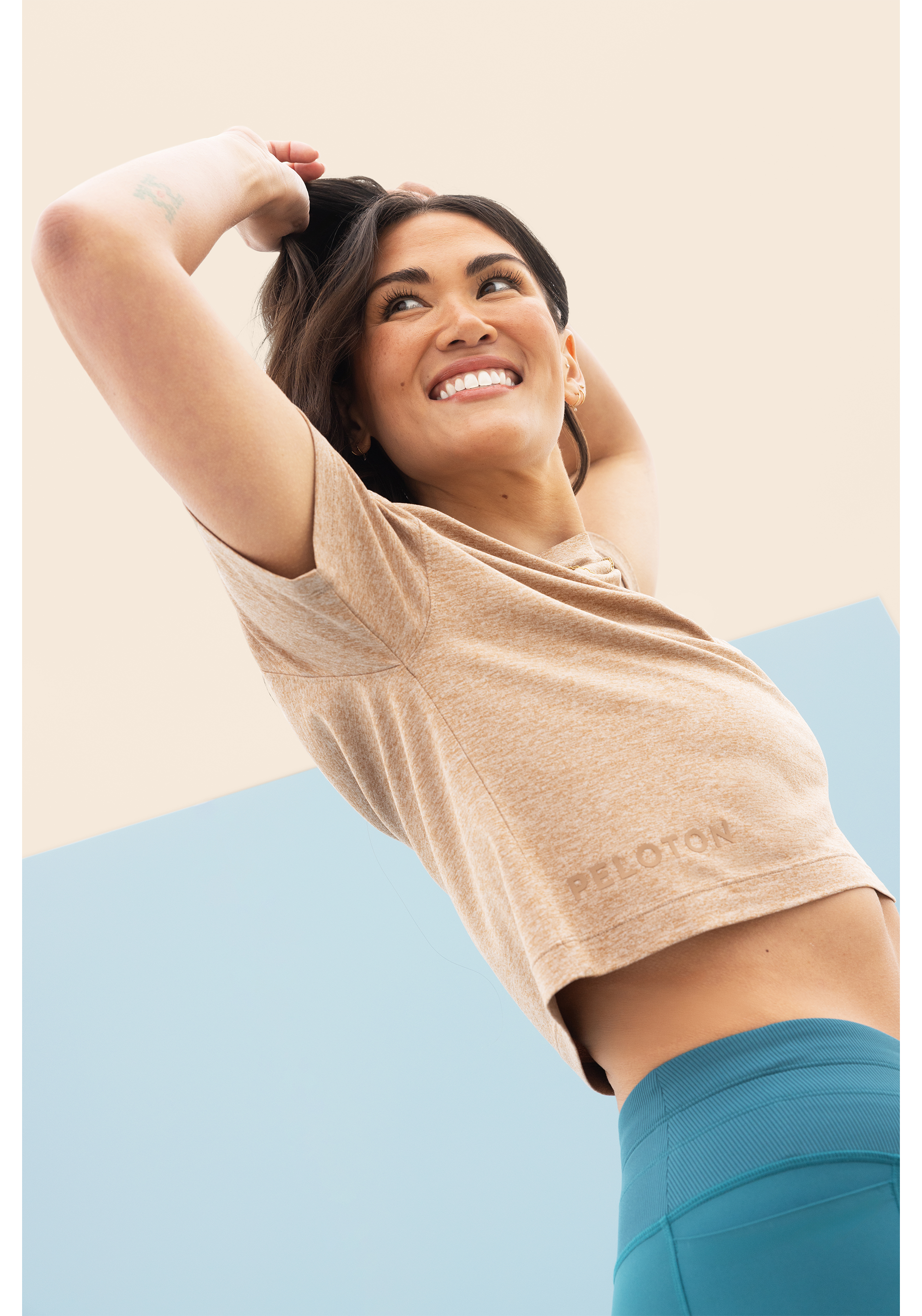Peloton wordmark at front right hem