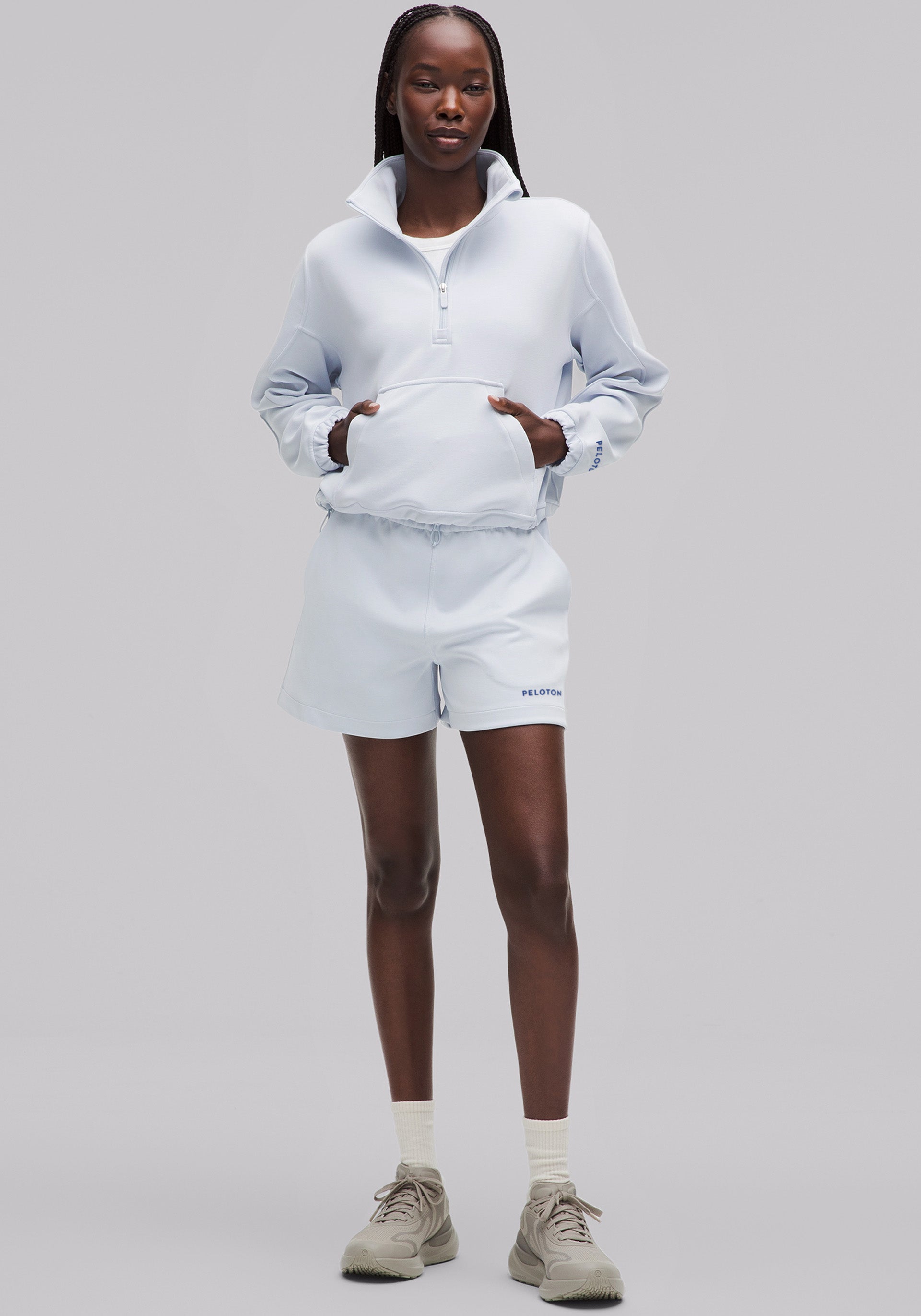 • Relaxed half zip with kangaroo pocket, hidden card sleeve, zipper garage and placket, and a cinchable hem for a custom fit