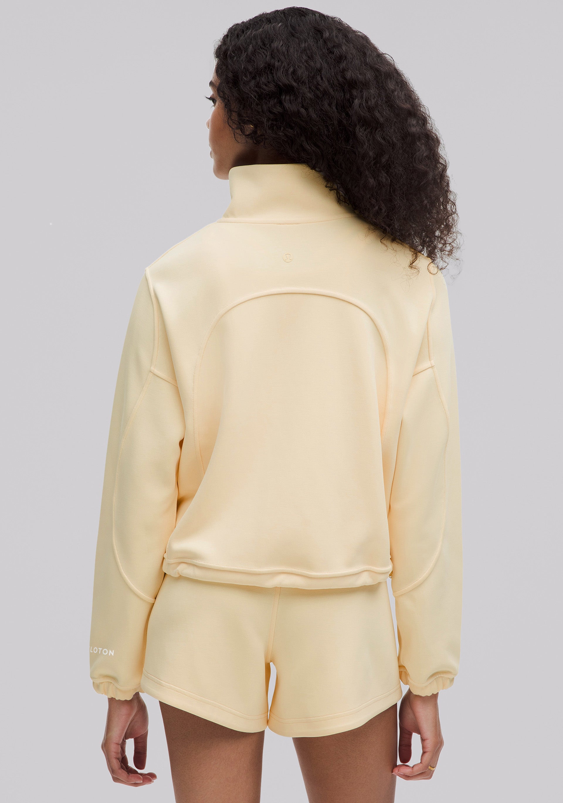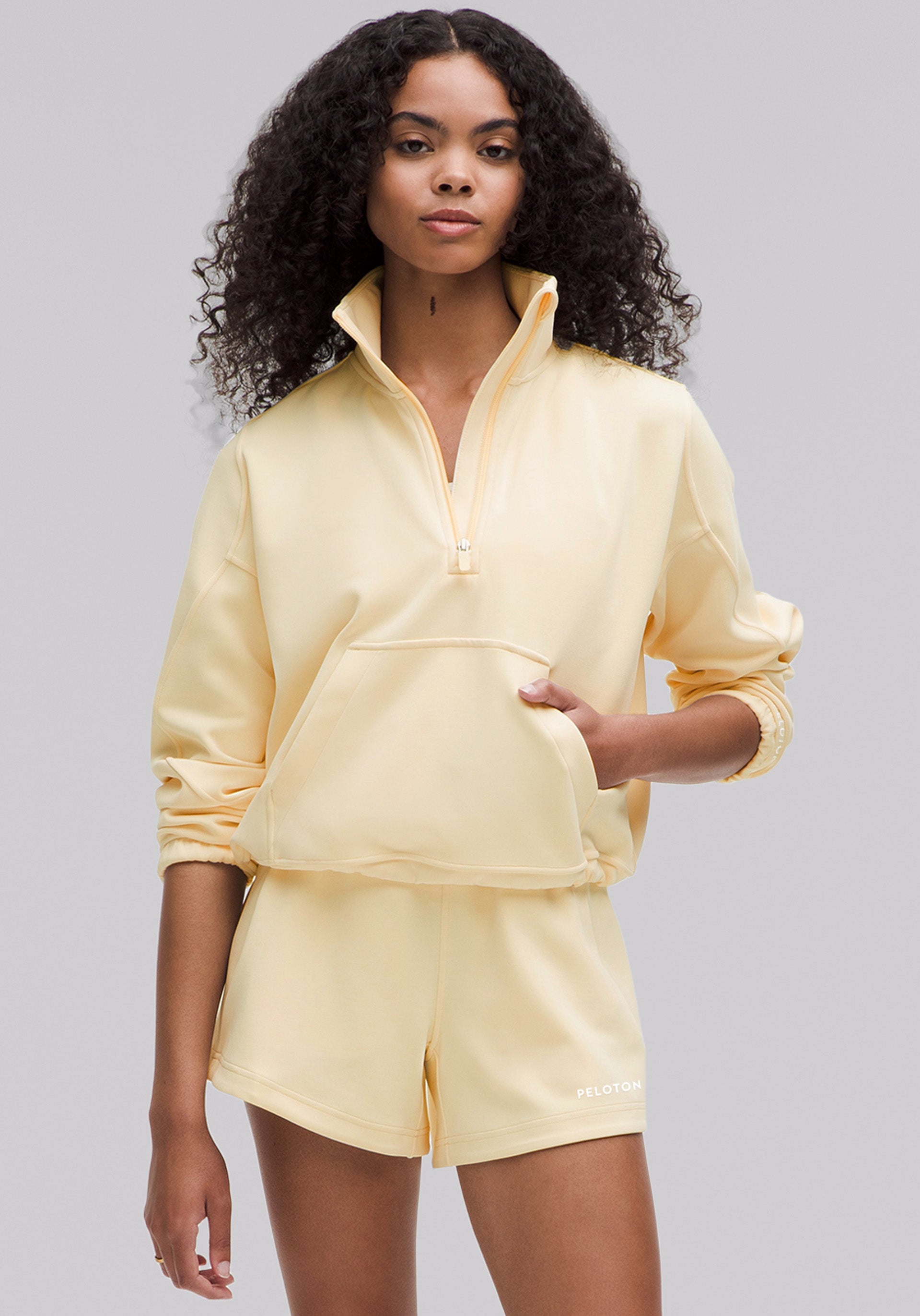 Relaxed half zip with kangaroo pocket, hidden card sleeve, zipper garage and placket, and a cinchable hem for a custom fit