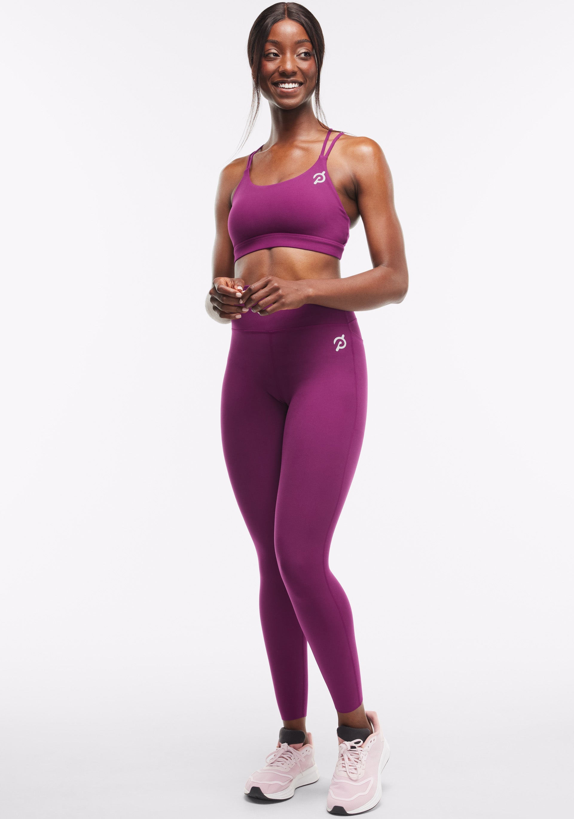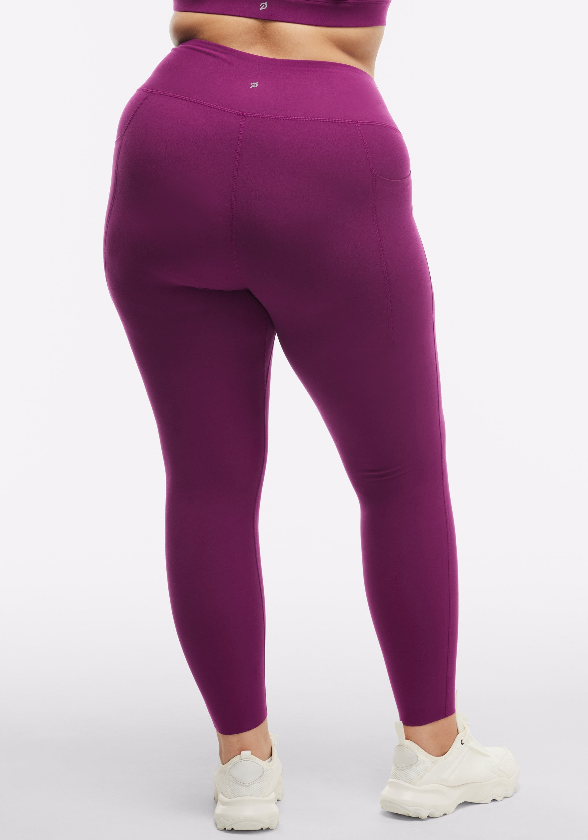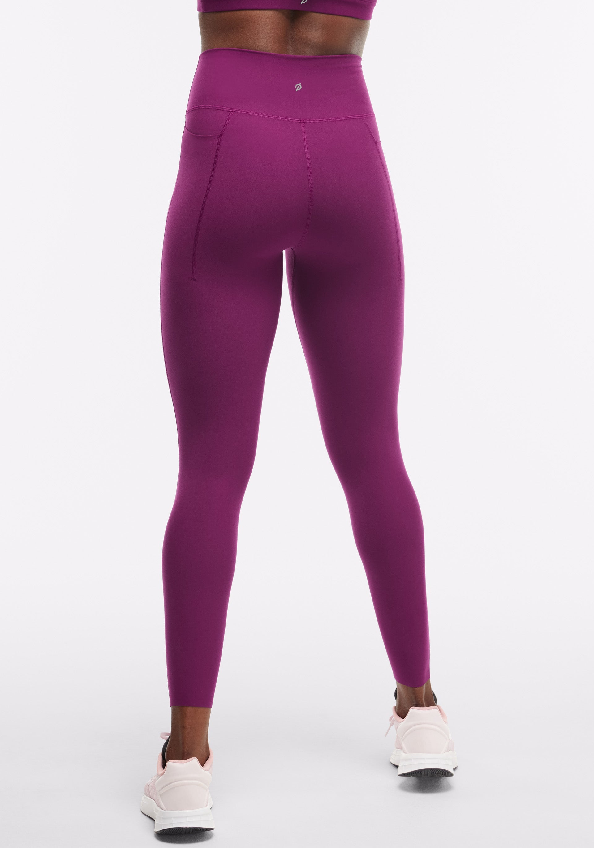 - High rise, 25" inseam legging with medium compression, side pockets, and elongated gusset