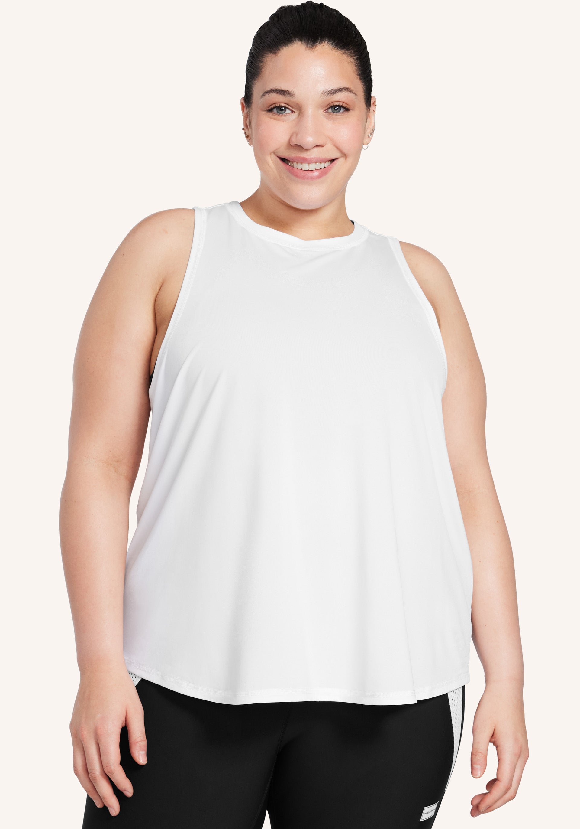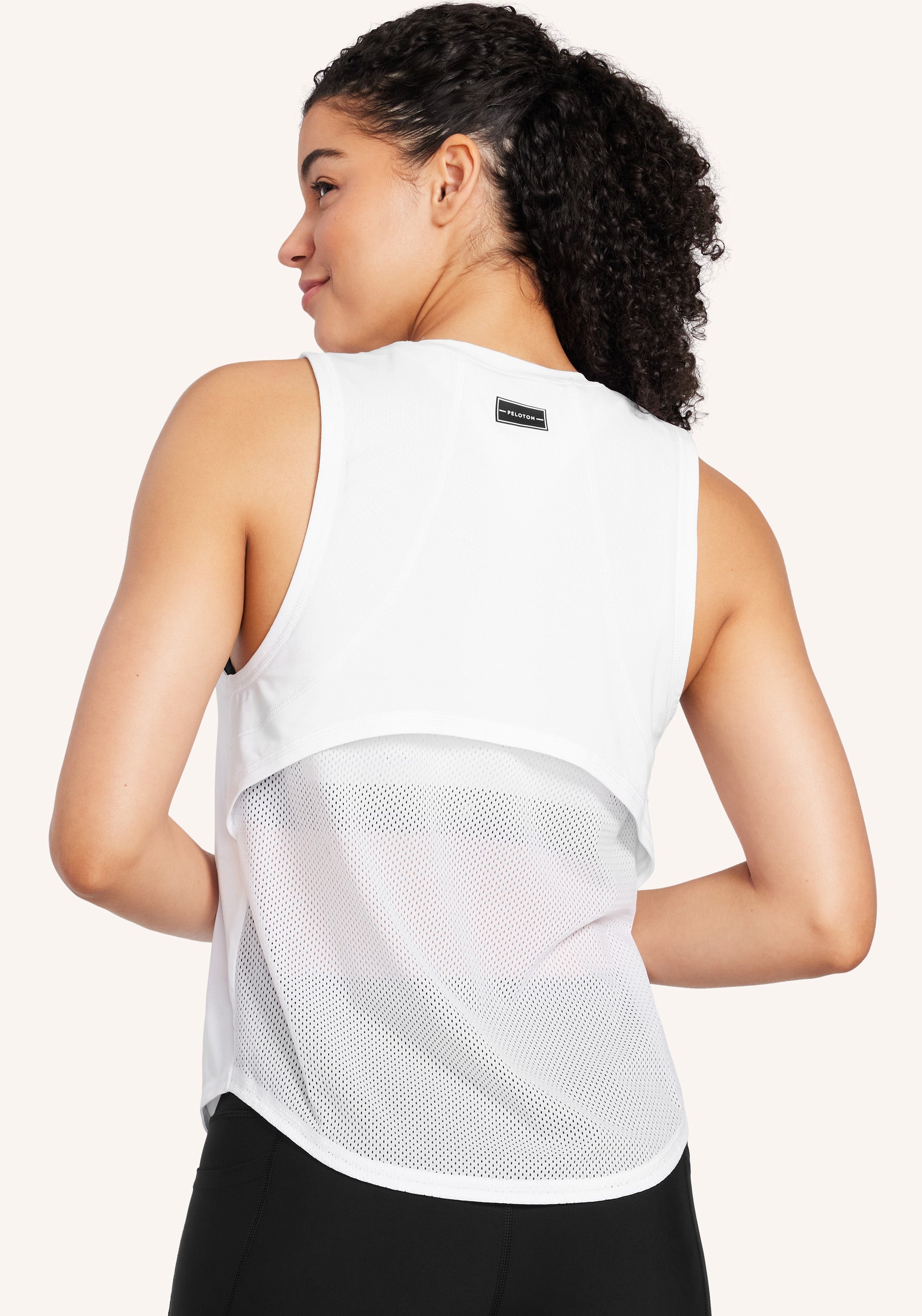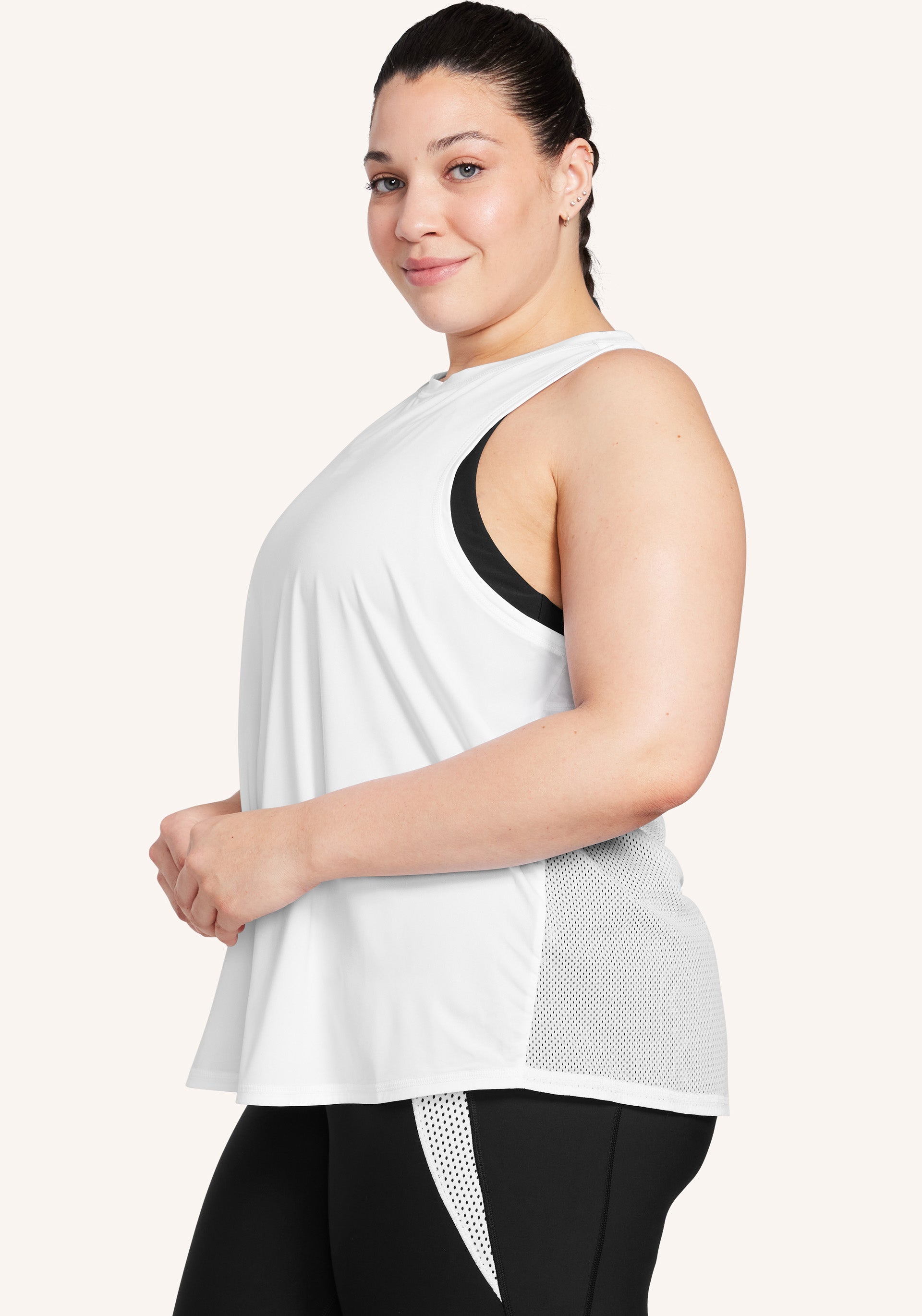 - Slinky performance racerback tank with racerback seam detailing and back mesh panel for added ventilation