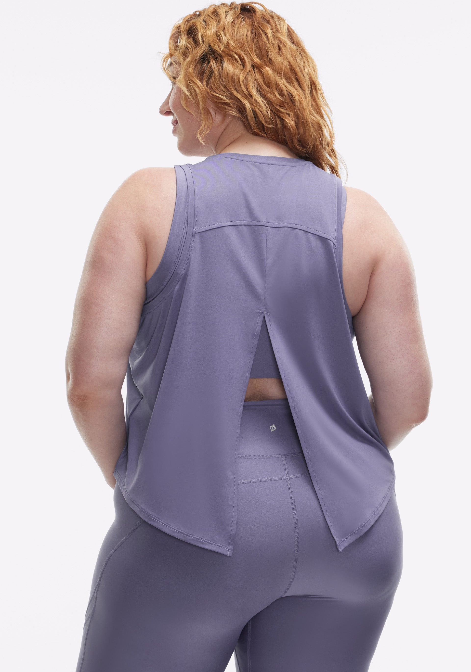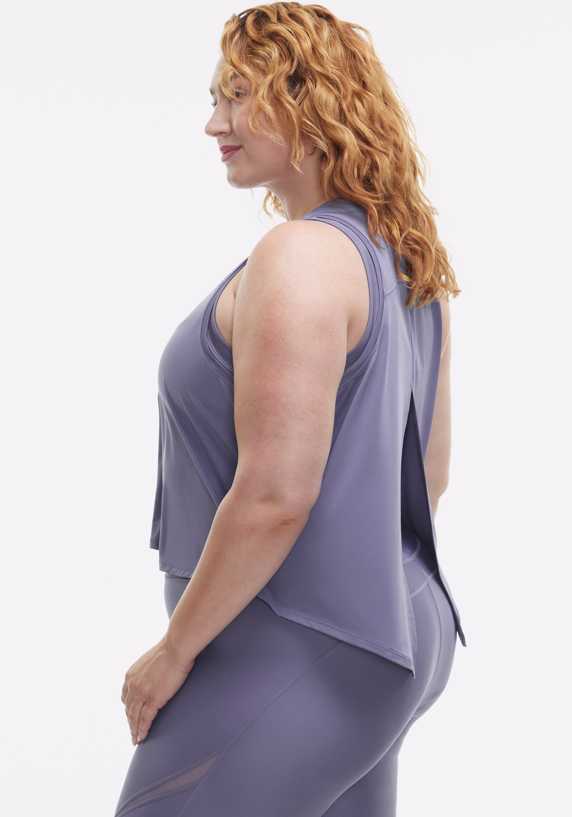 - Crew neck muscle tank with splice back detailing for added ventilation