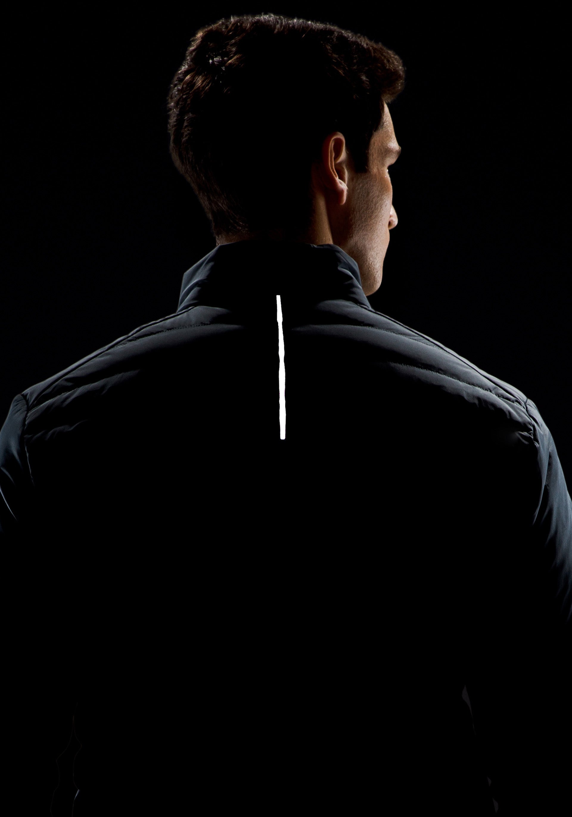Body: 90% Nylon, 10% Elastane / Lining: 100% Recycled Polyester / Contrast: 82% Nylon, 18% Lycra® elastane / Pocket: 100% Recycled Polyester / Body filling: 85% Grey goose down, 15% Grey Goose Feathers/ Trim filling: 75% Recycled polyester, 25% Polyester