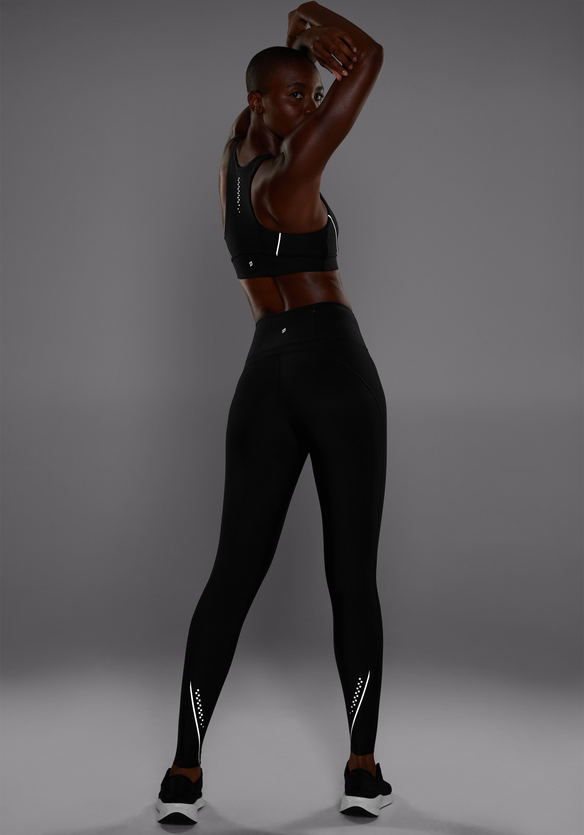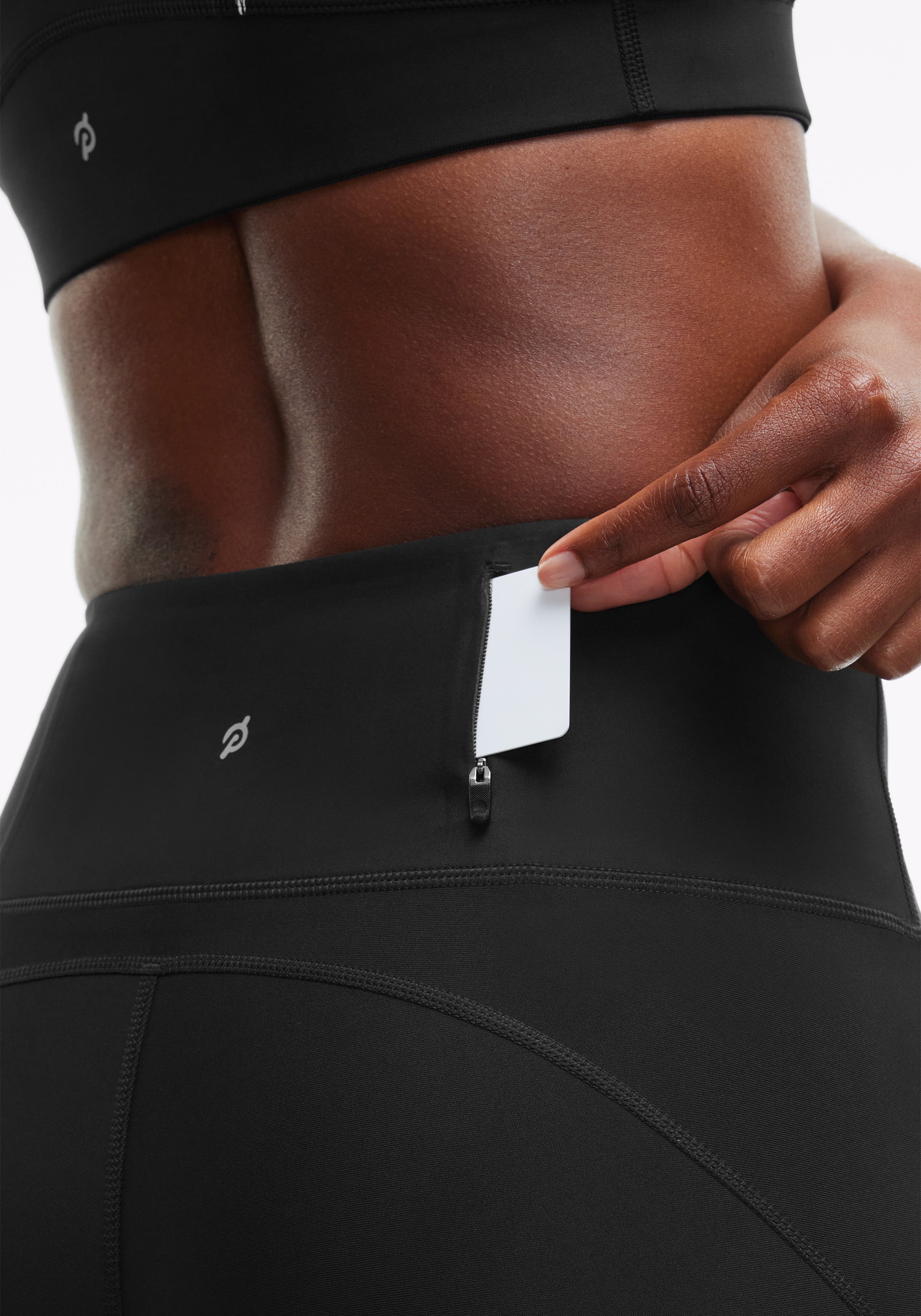 - High rise, 25" inseam legging with laser cut hem, exterior back waistband stash pocket, elongated gusset, and back yoke detail to avoid chafe
