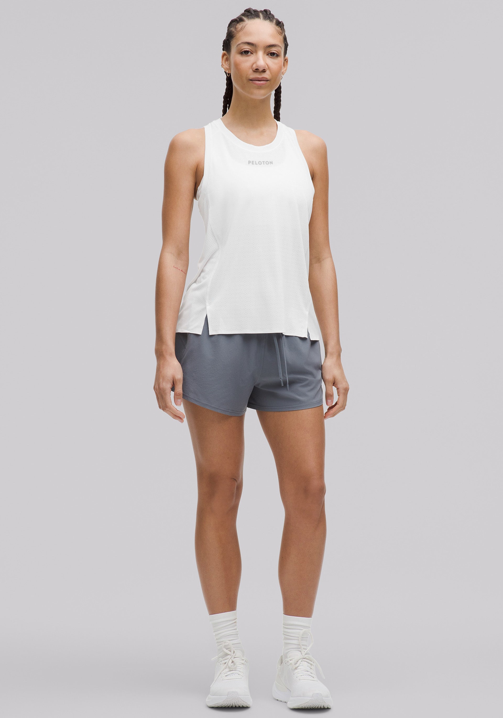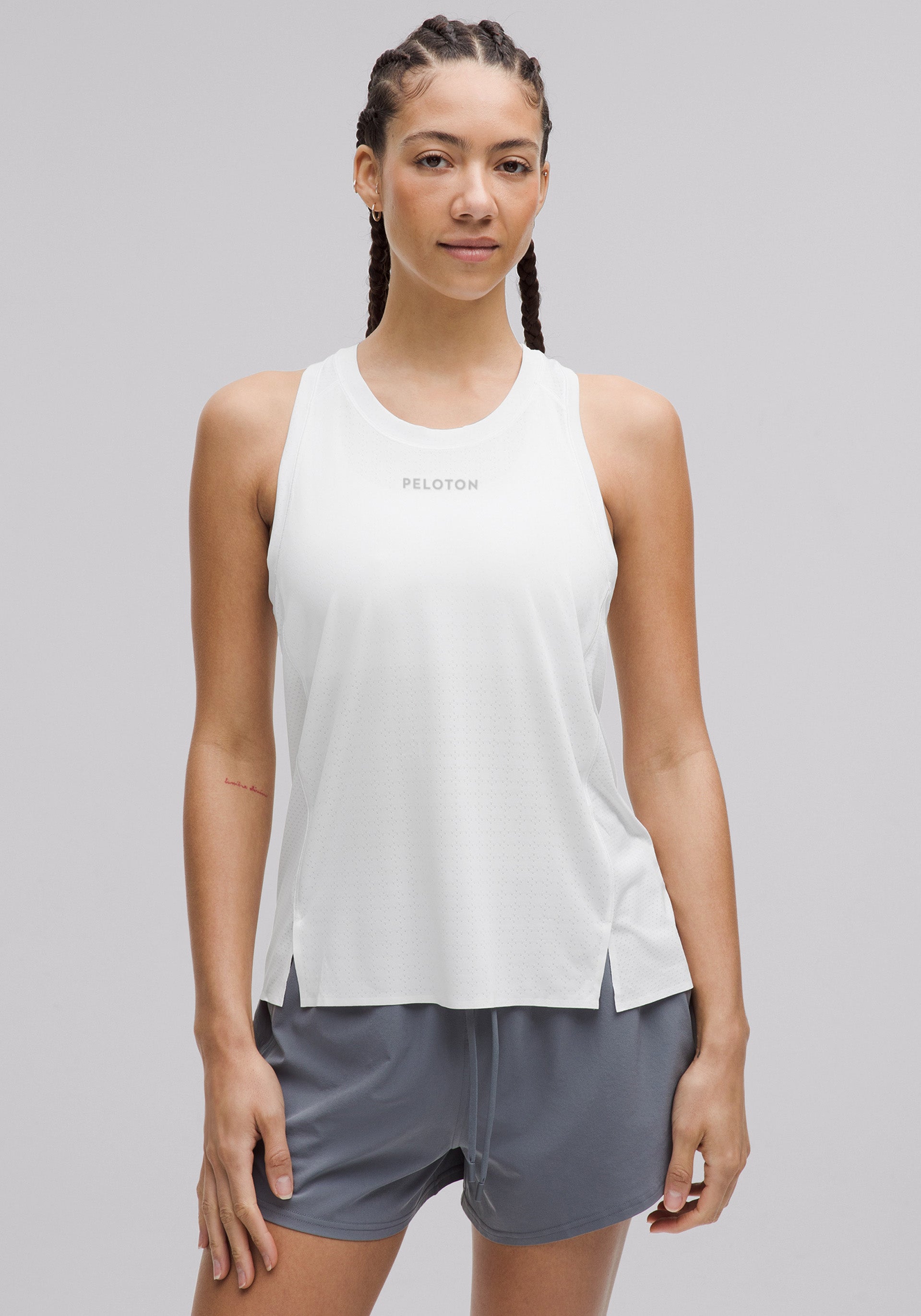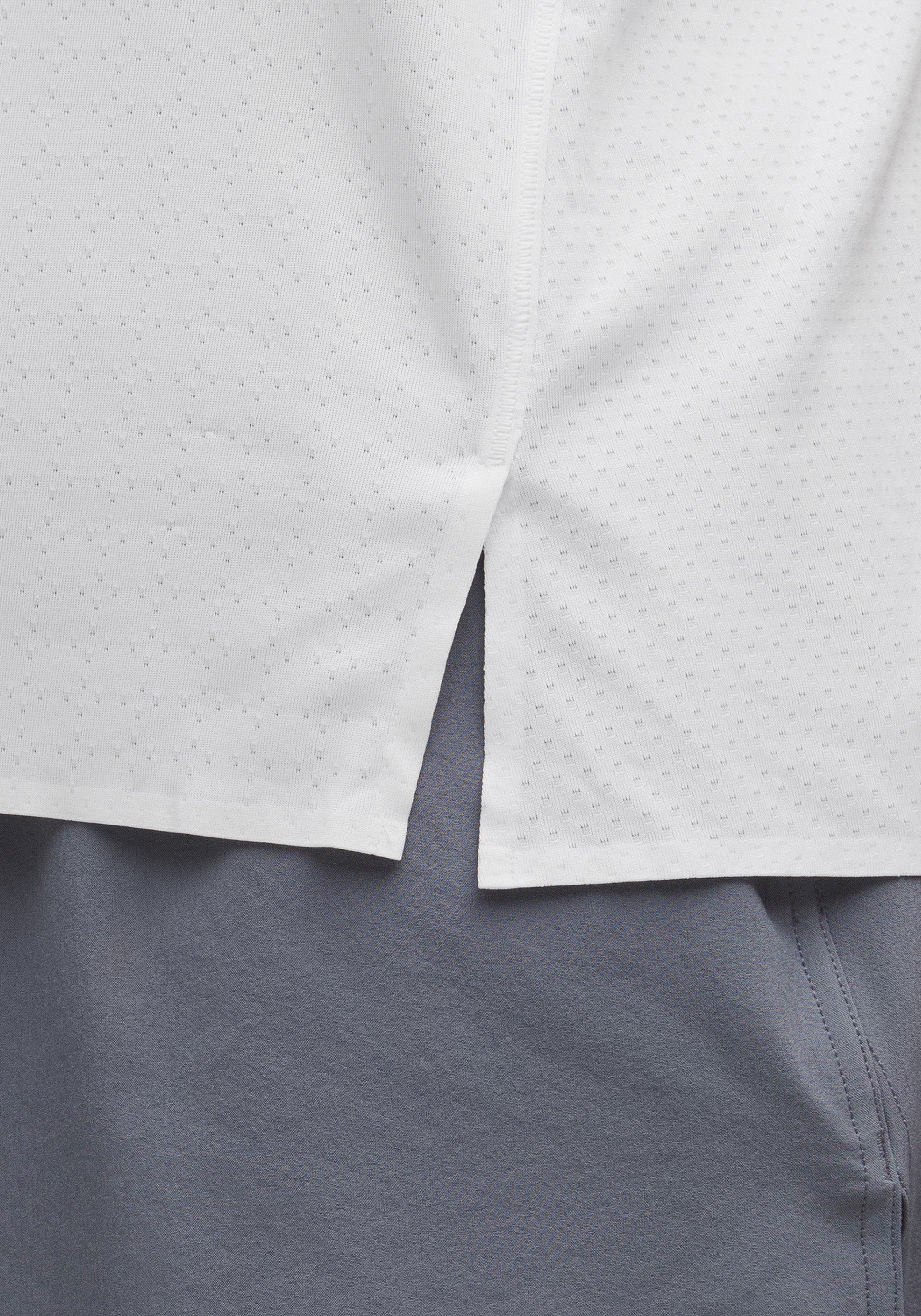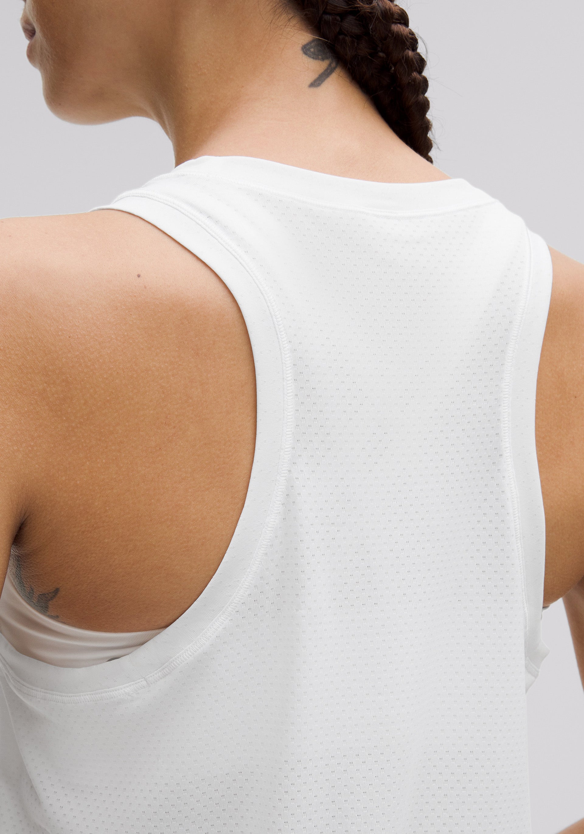 100% pure running freedom. This lightweight singlet features front slits and breathable mesh fabric to maximize mobility and airflow.