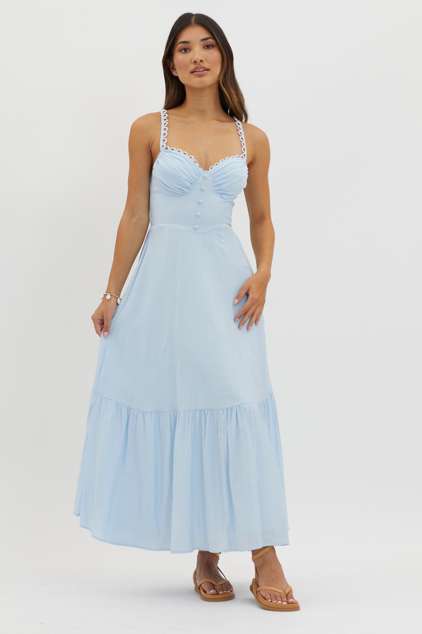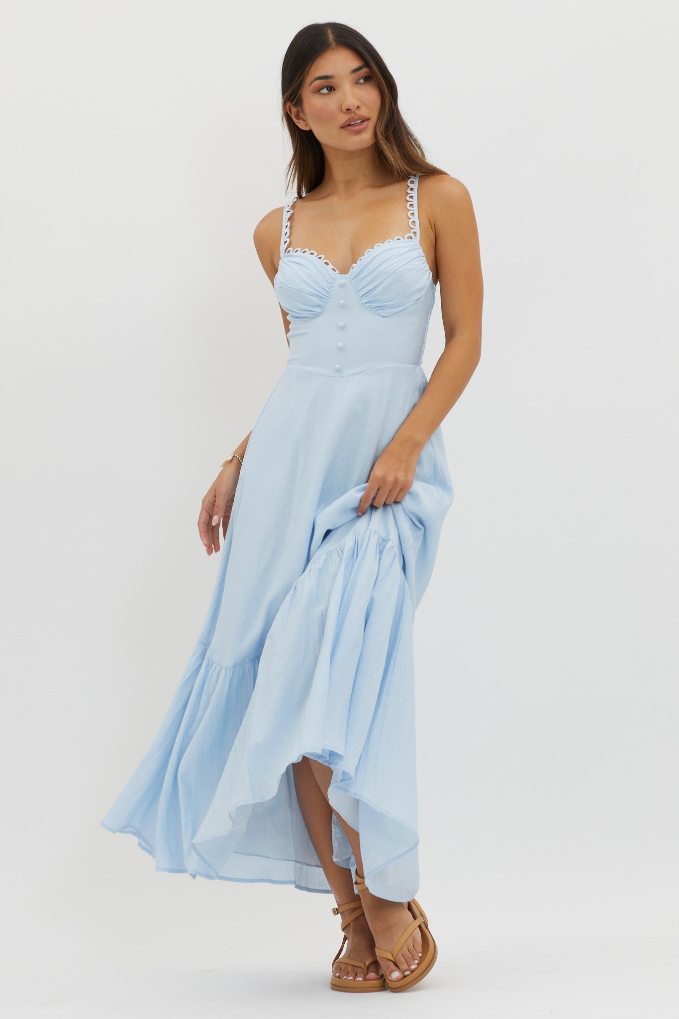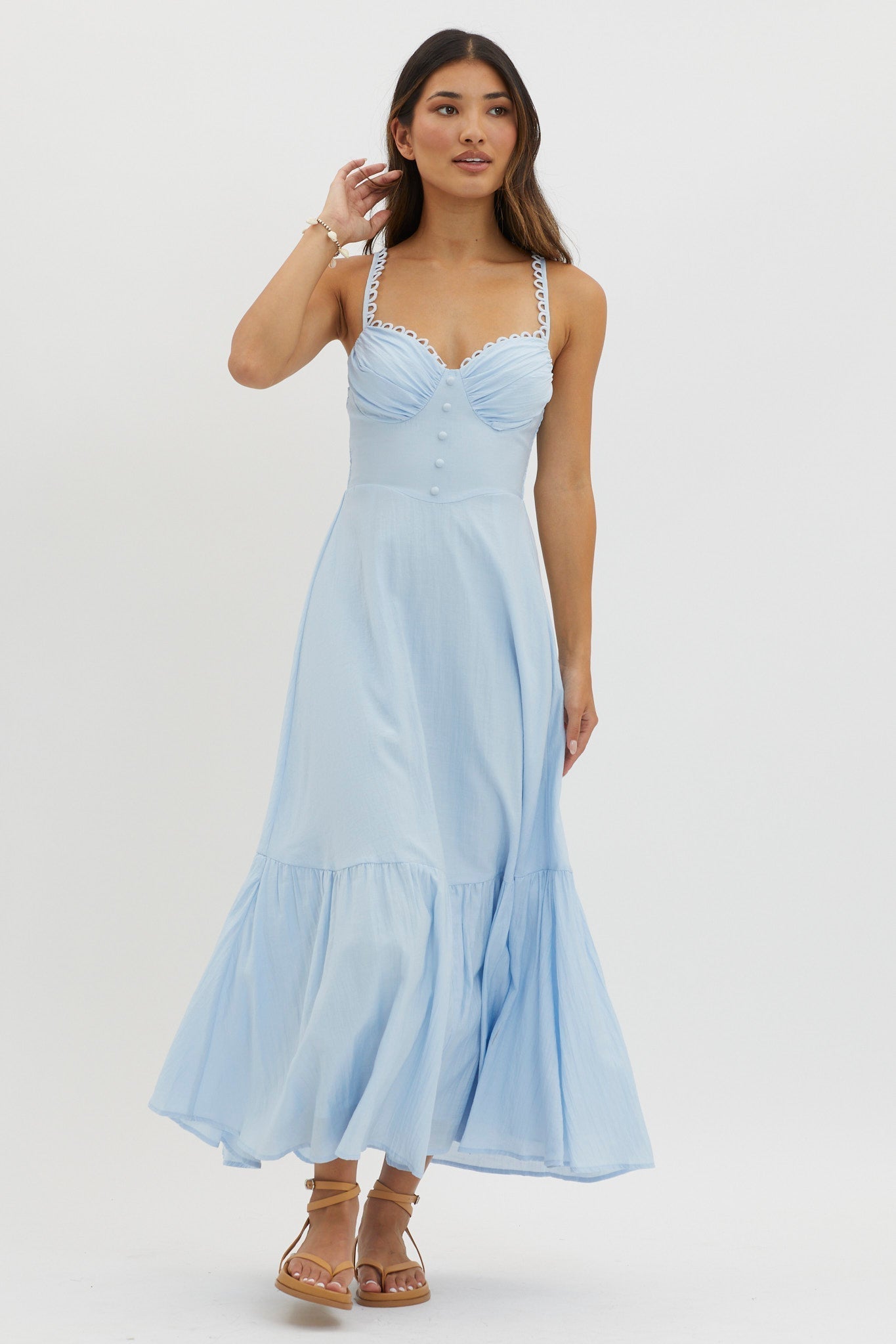 Golden Suns Scallop Trim Midi Dress Baby Blue