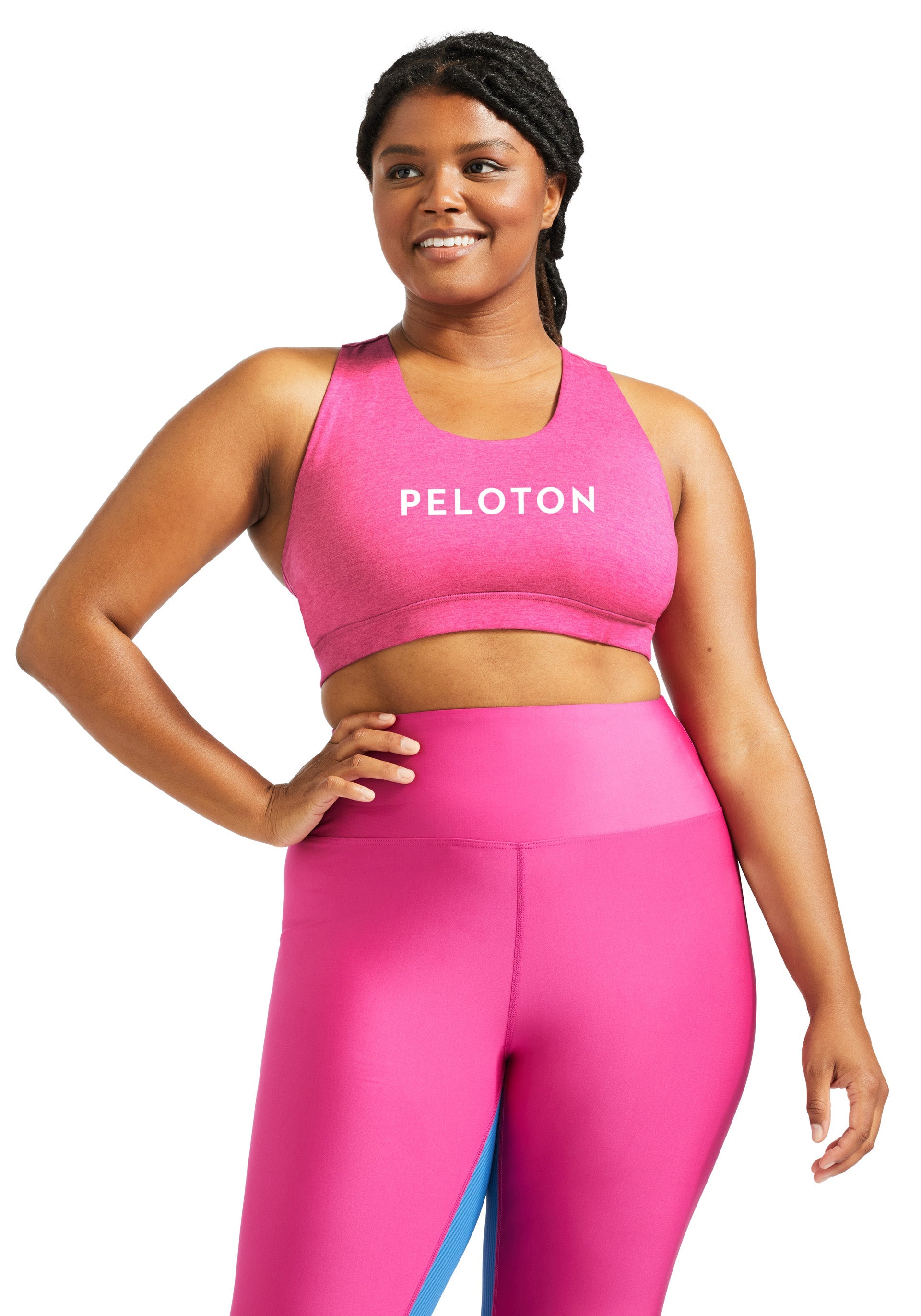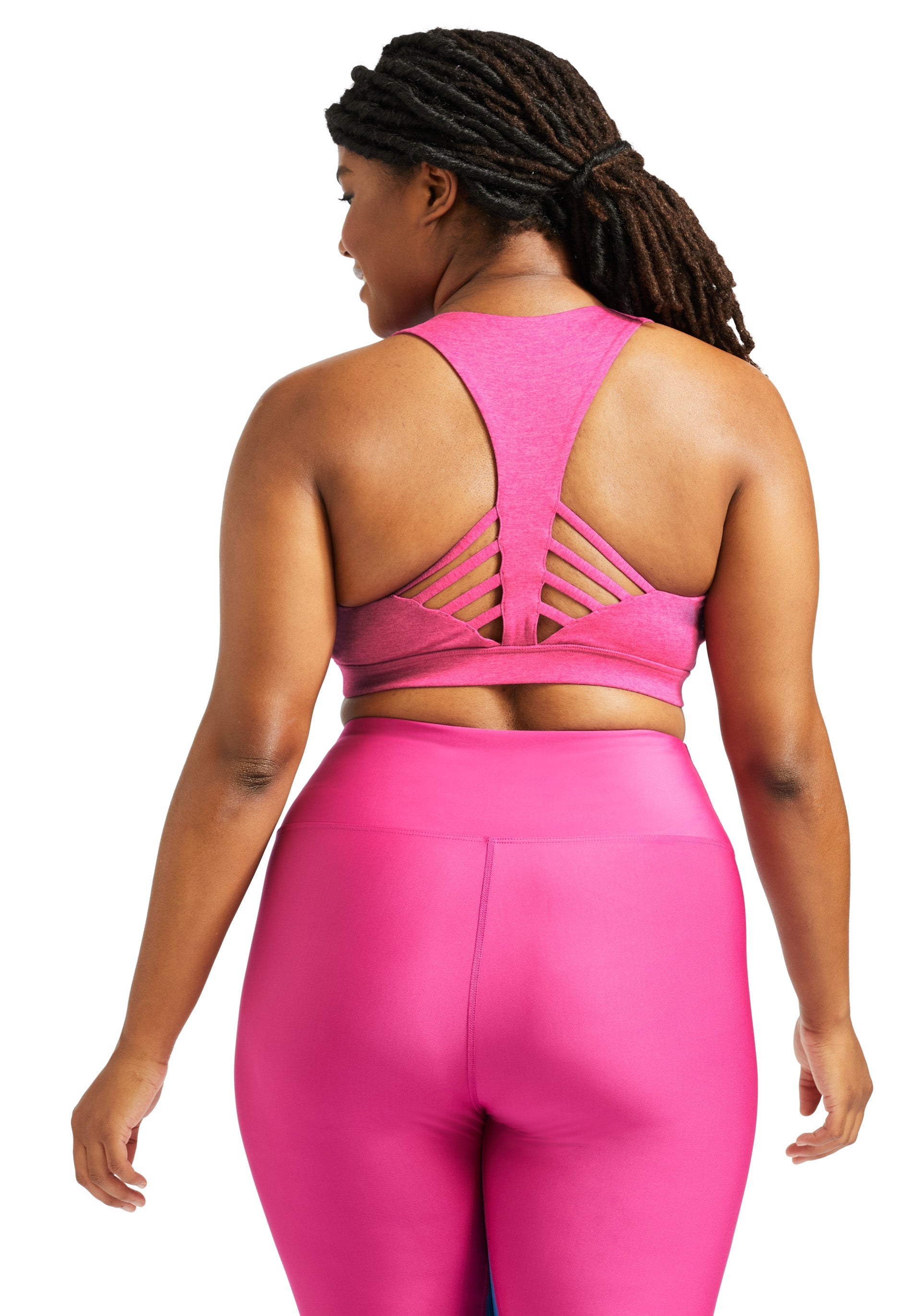 - Medium support, heathered pink racerback bra