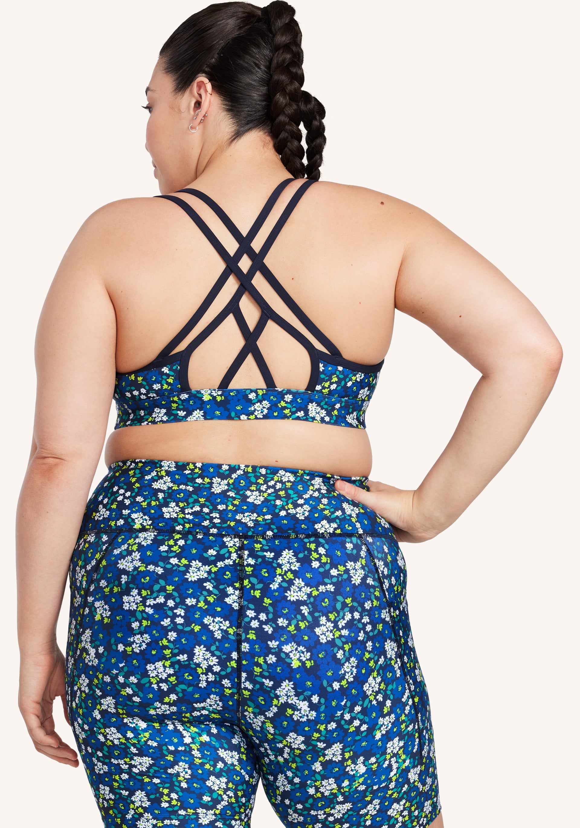 - Low-Medium support bra with contrast strappy detail and removable cup pads