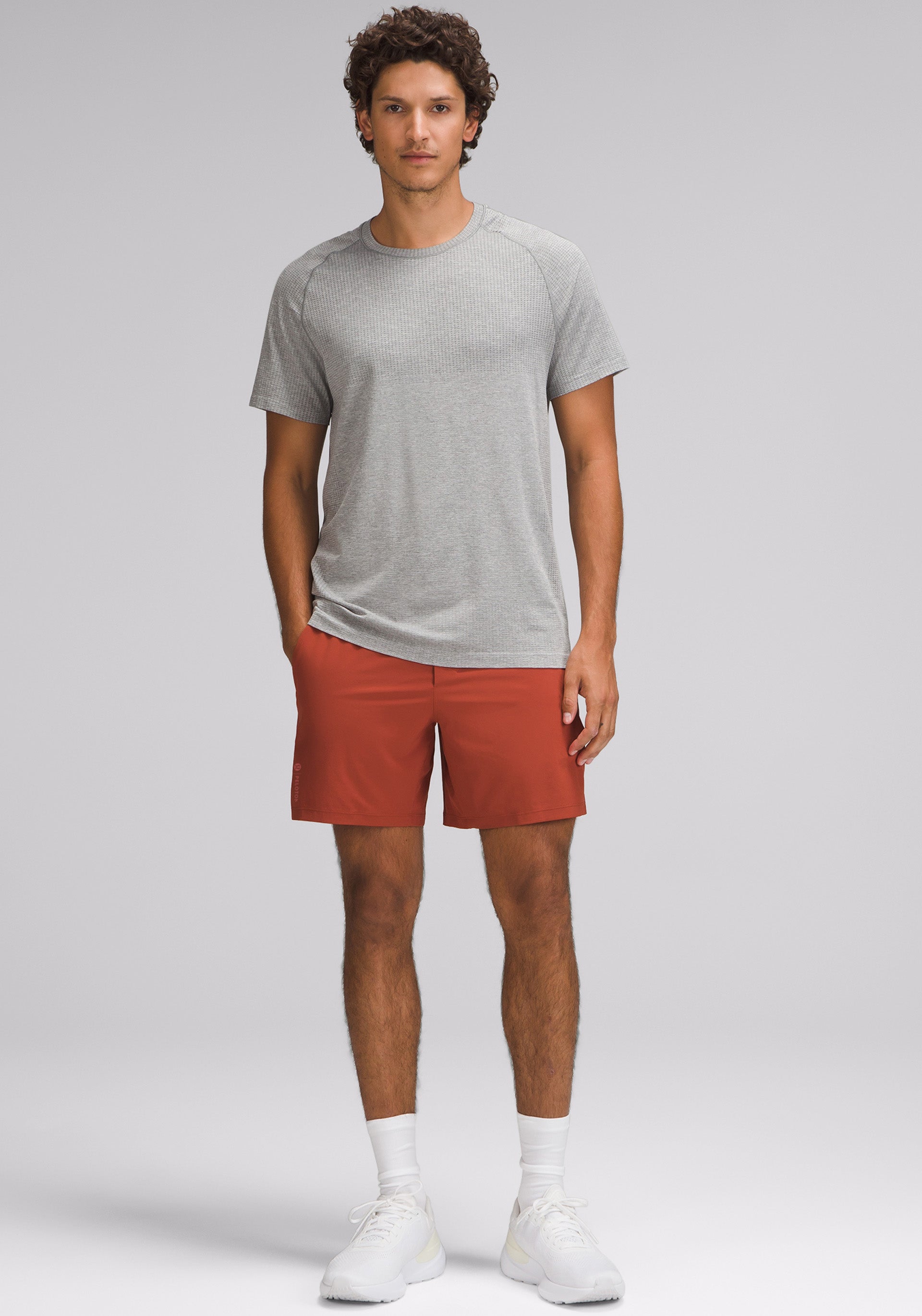 7” inseam, linerless performance short with ultra-soft inner waistband and low-bounce side zippered pocket. Soft grid mesh liner is sweat-wicking and quick-drying with a supportive built-in pouch and a pocket for drawcord strings