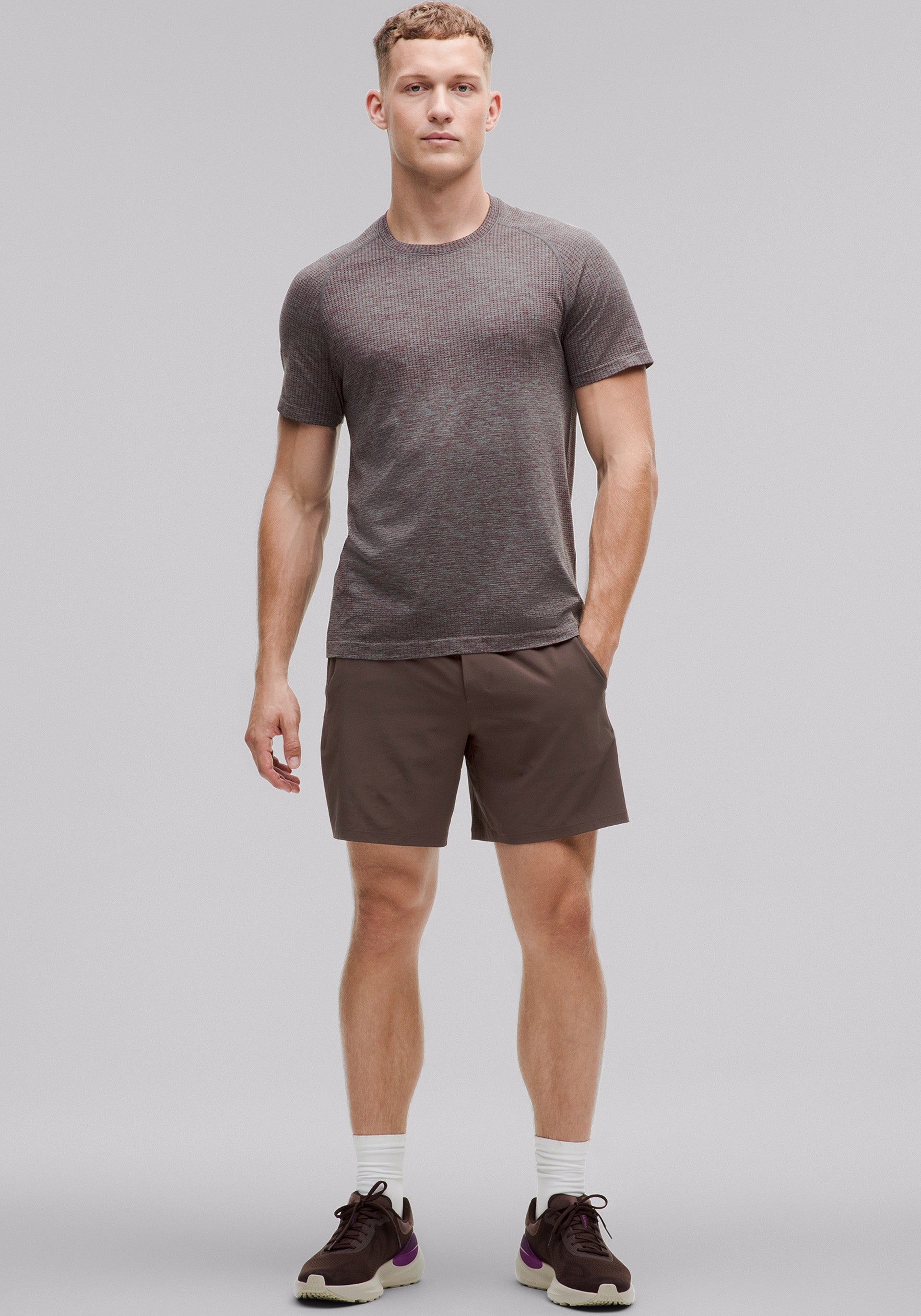 7” inseam, linerless performance short with ultra-soft inner waistband and low-bounce side zippered pocket. Soft grid mesh liner is sweat-wicking and quick-drying with a supportive built-in pouch and a pocket for drawcord strings