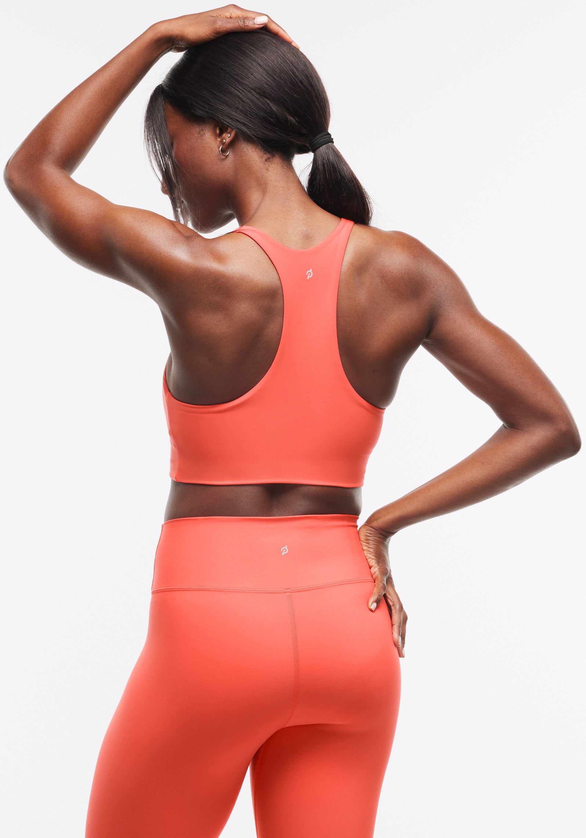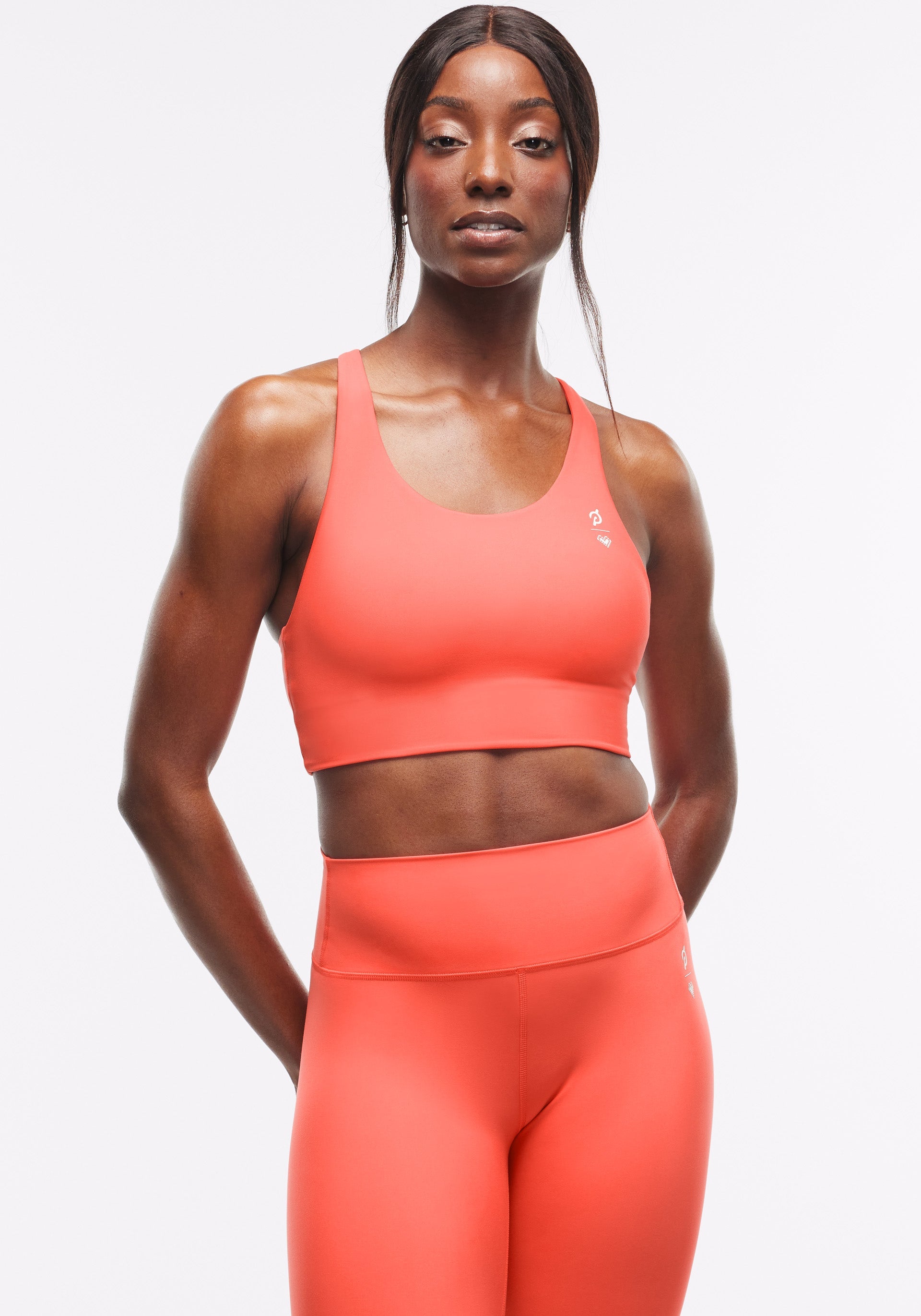 - Low-Medium support racerback bra with faced sweat channel elastic band and clean finish to avoid chafing