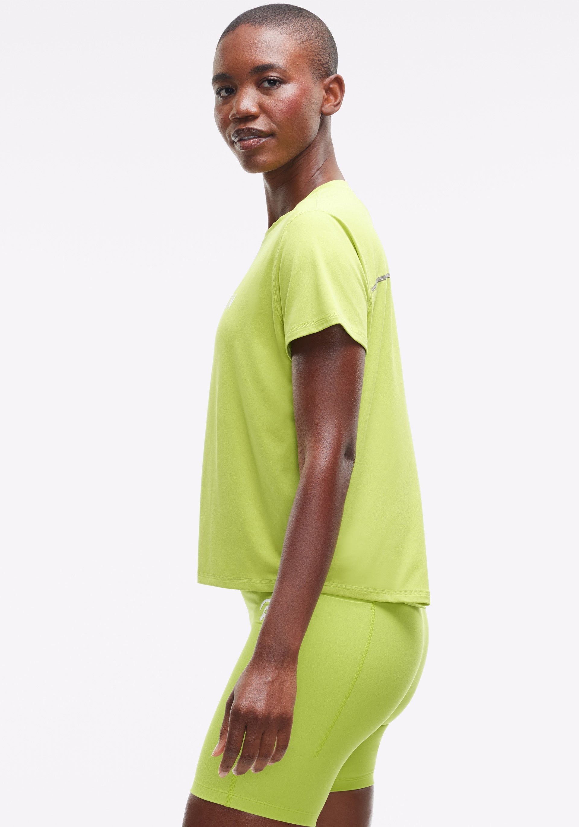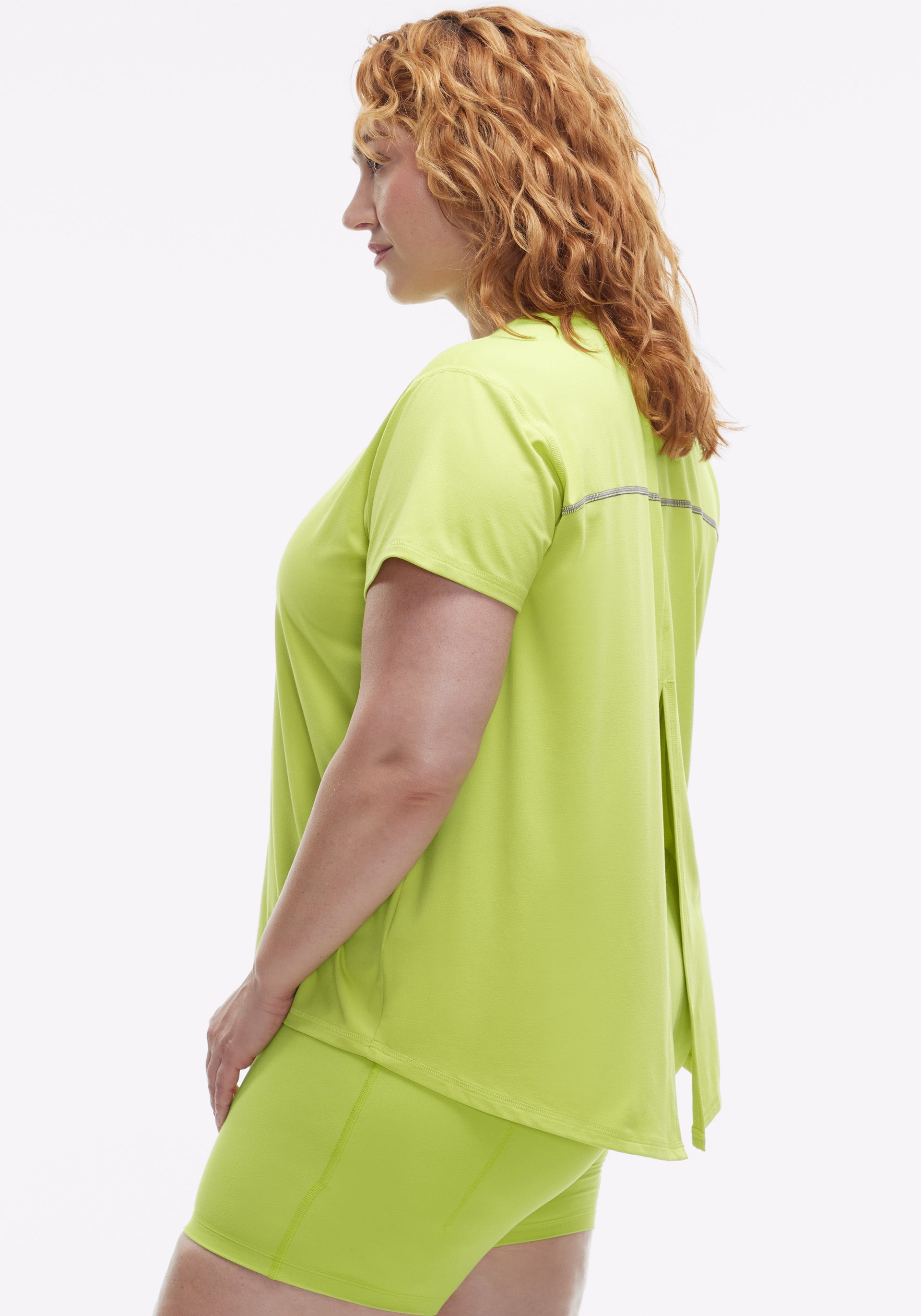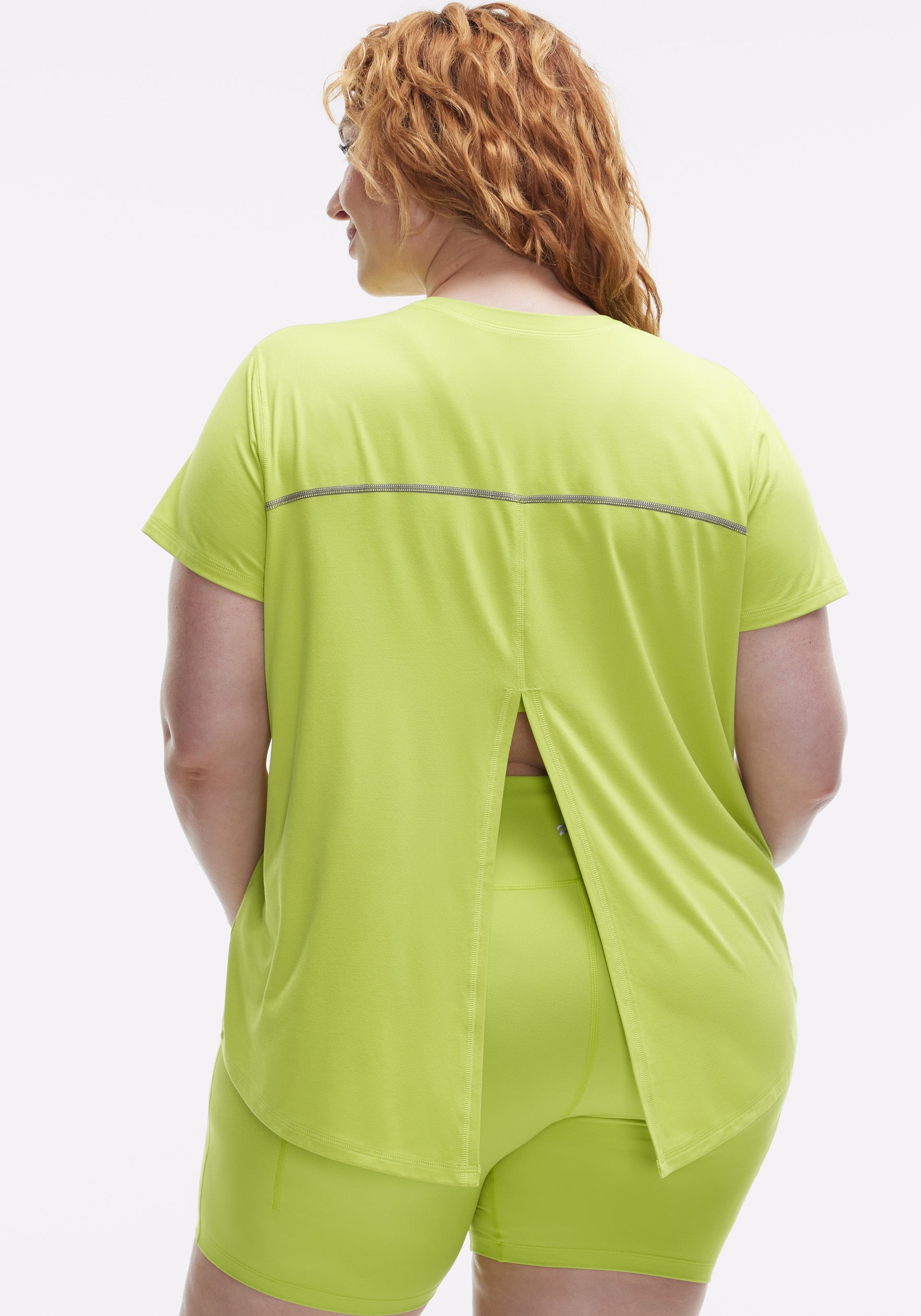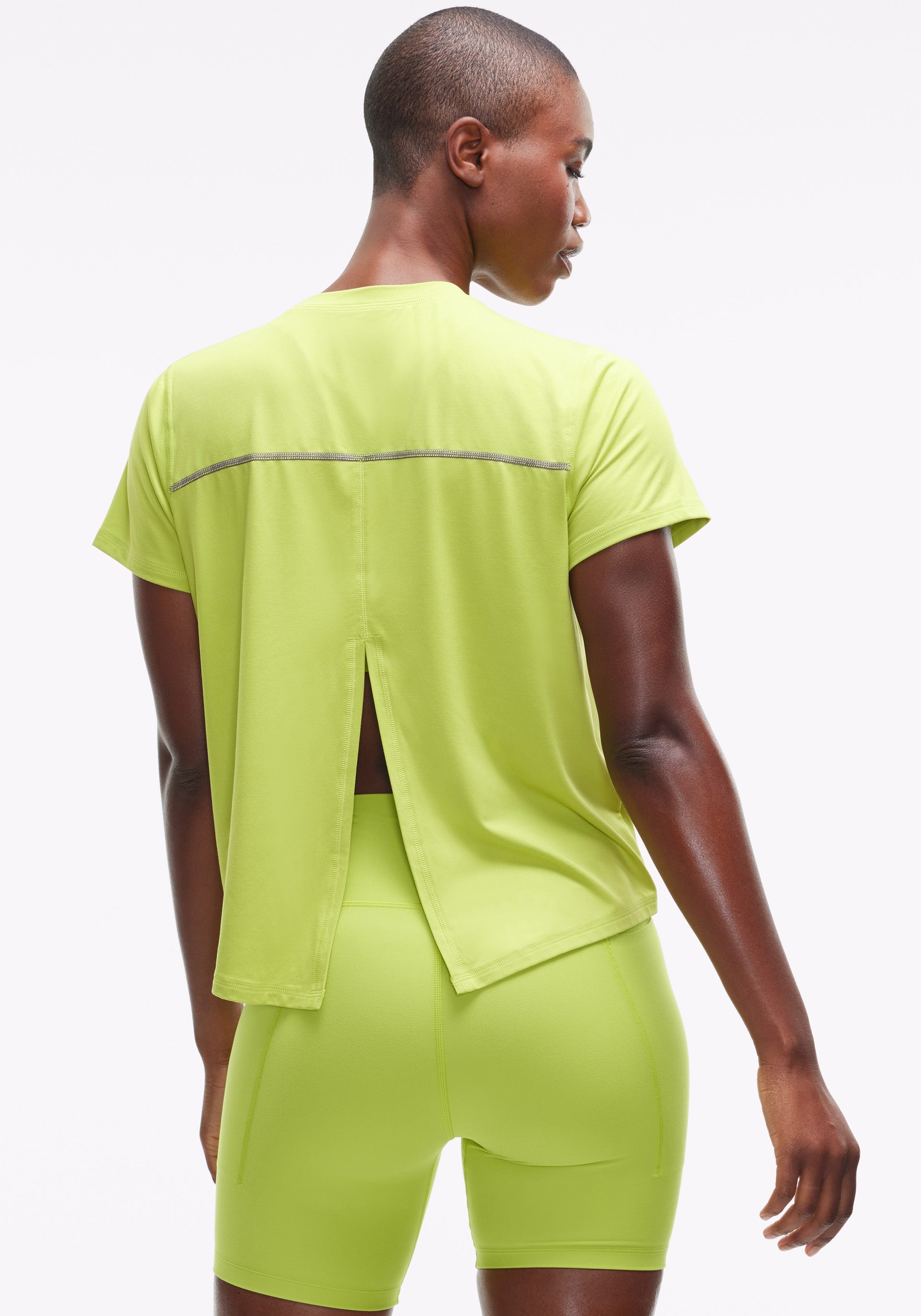 - Crewneck short sleeve with splice back detailing for added ventilation and pop stitch detail at back
