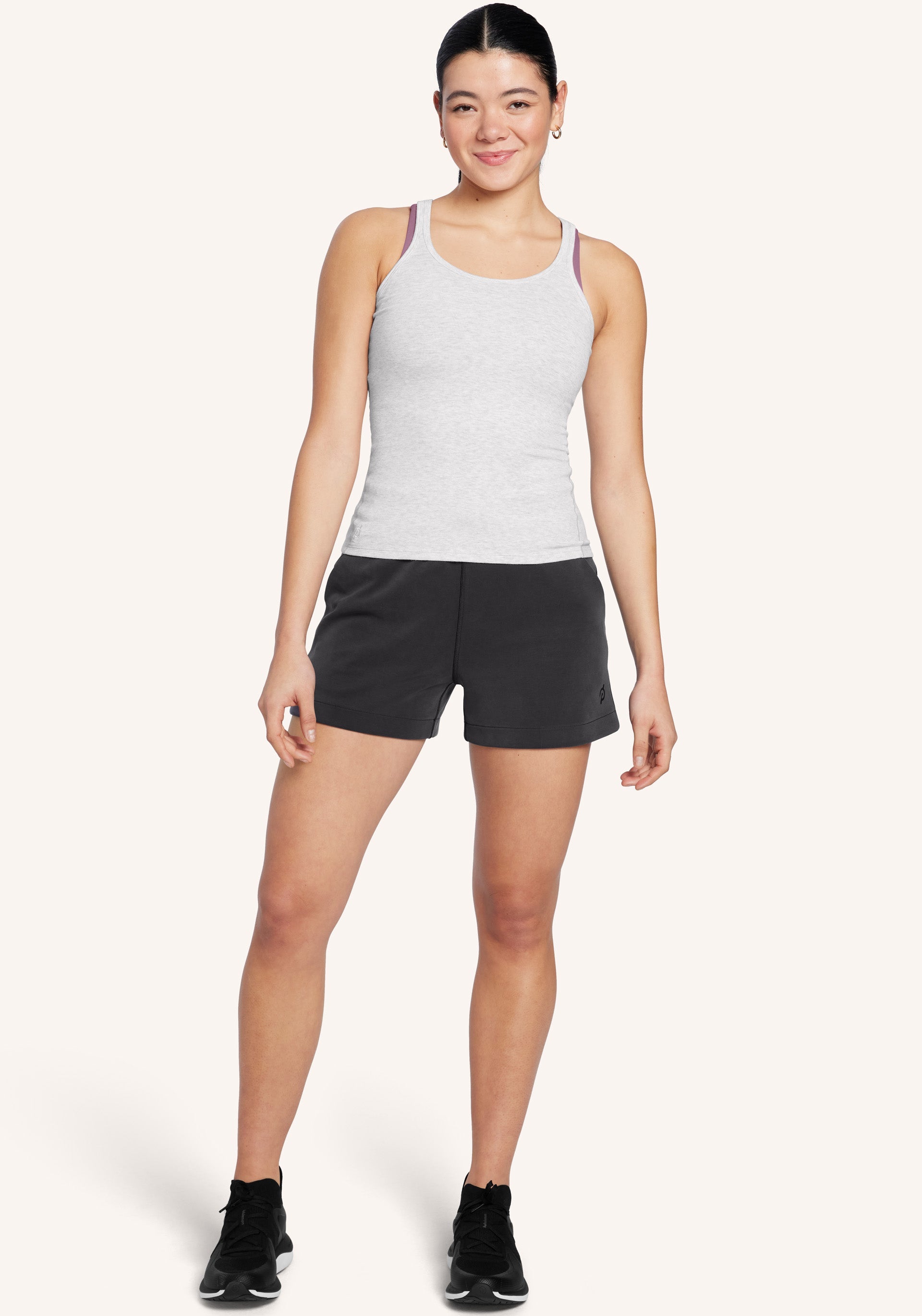 - High rise, 4” inseam short with shockcord at the waist to customize fit and front pockets with interior card sleeve