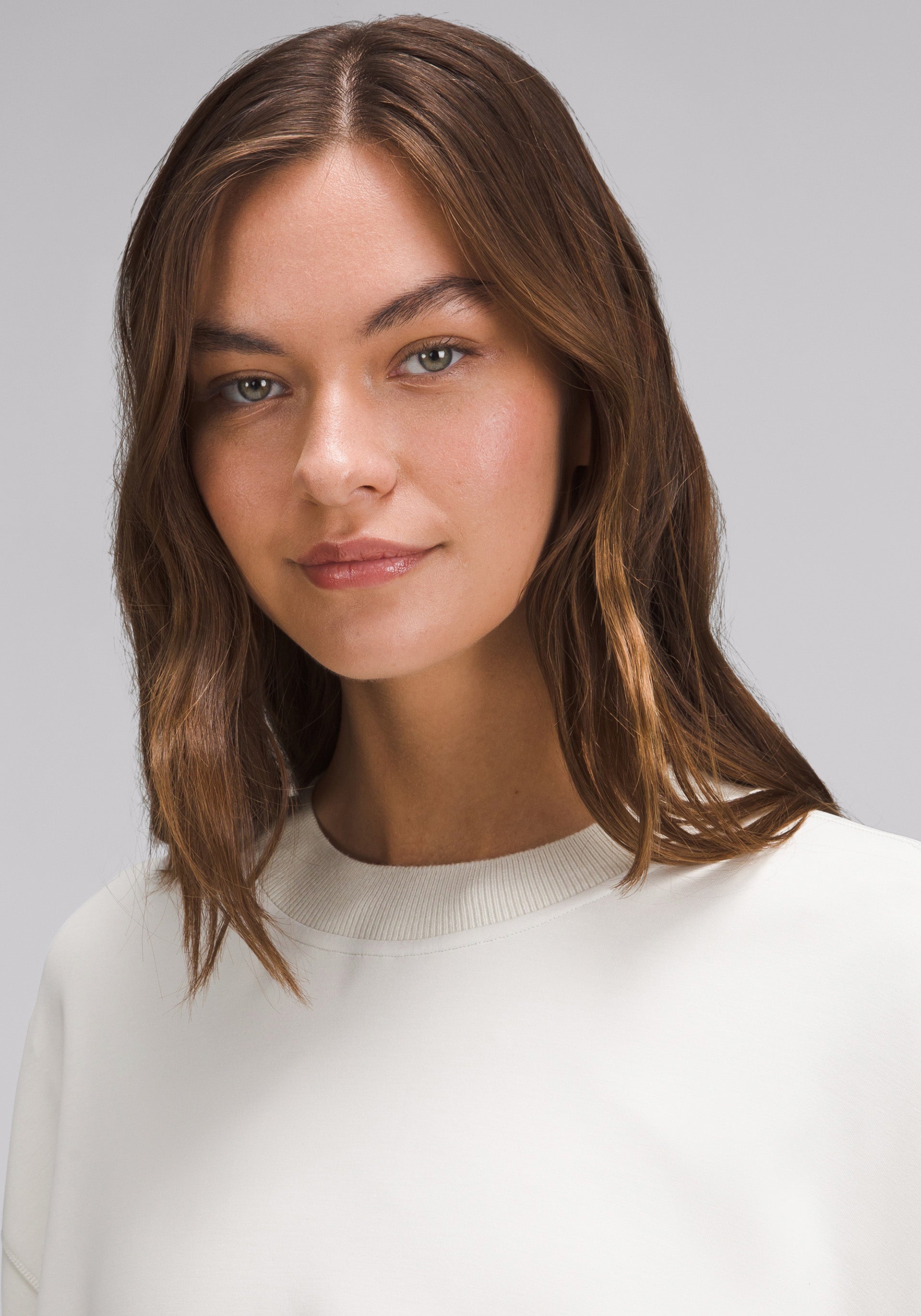 Turn up the volume. This pullover is peach-fuzz soft on the outside and cool next to skin with a bubble hem and voluminous sleeves.