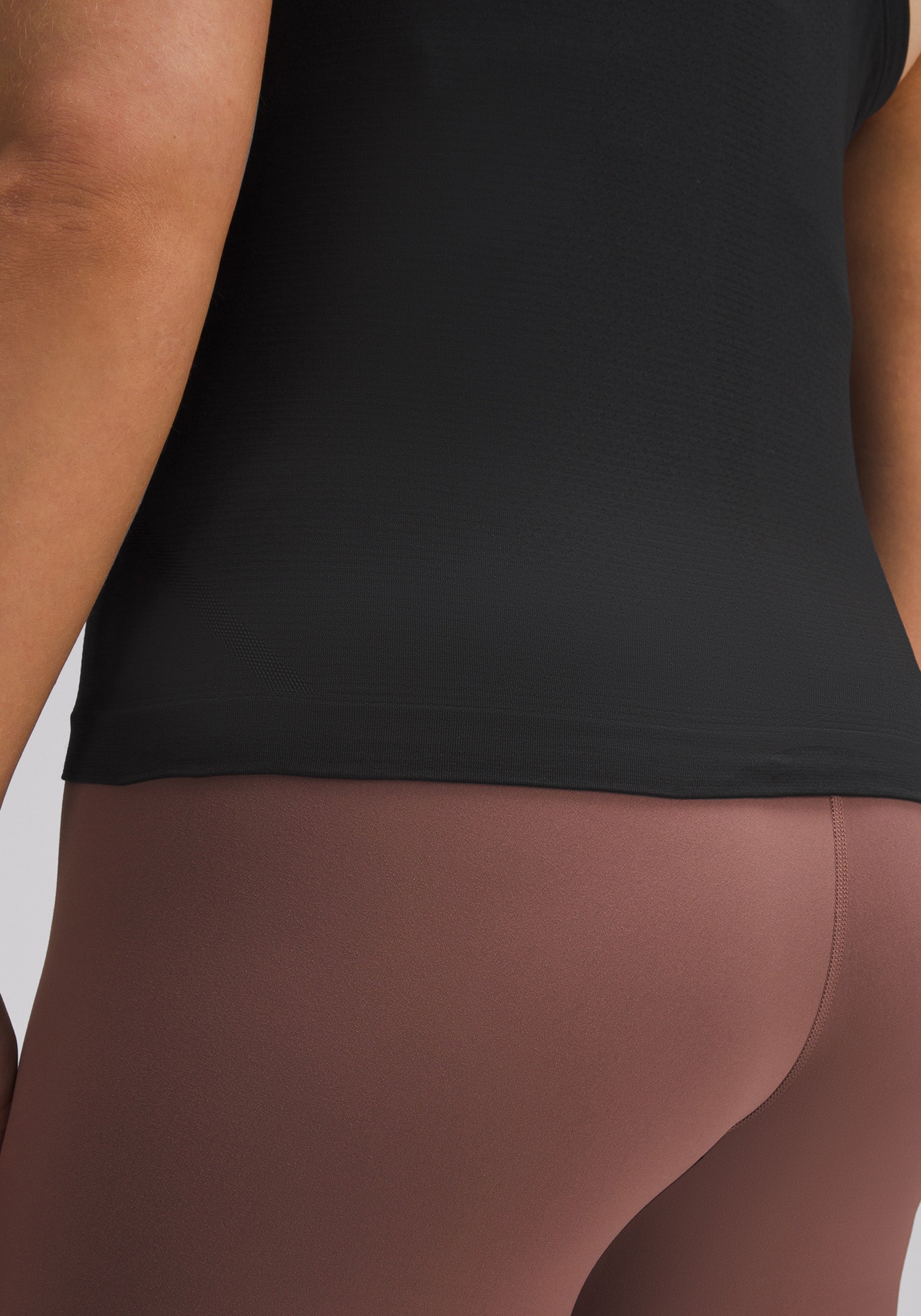 - Slim fit, seamless racerback tank that meets at your waistband so it won't ride up on long runs or race day