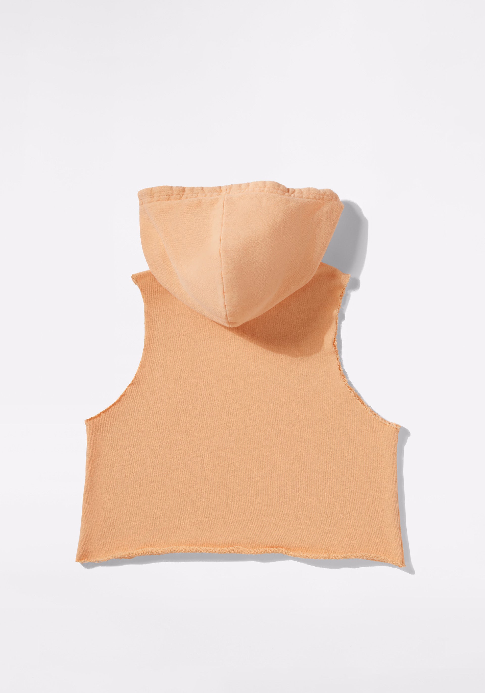 - Cropped muscle tank hoodie with raw cut hem and armhole