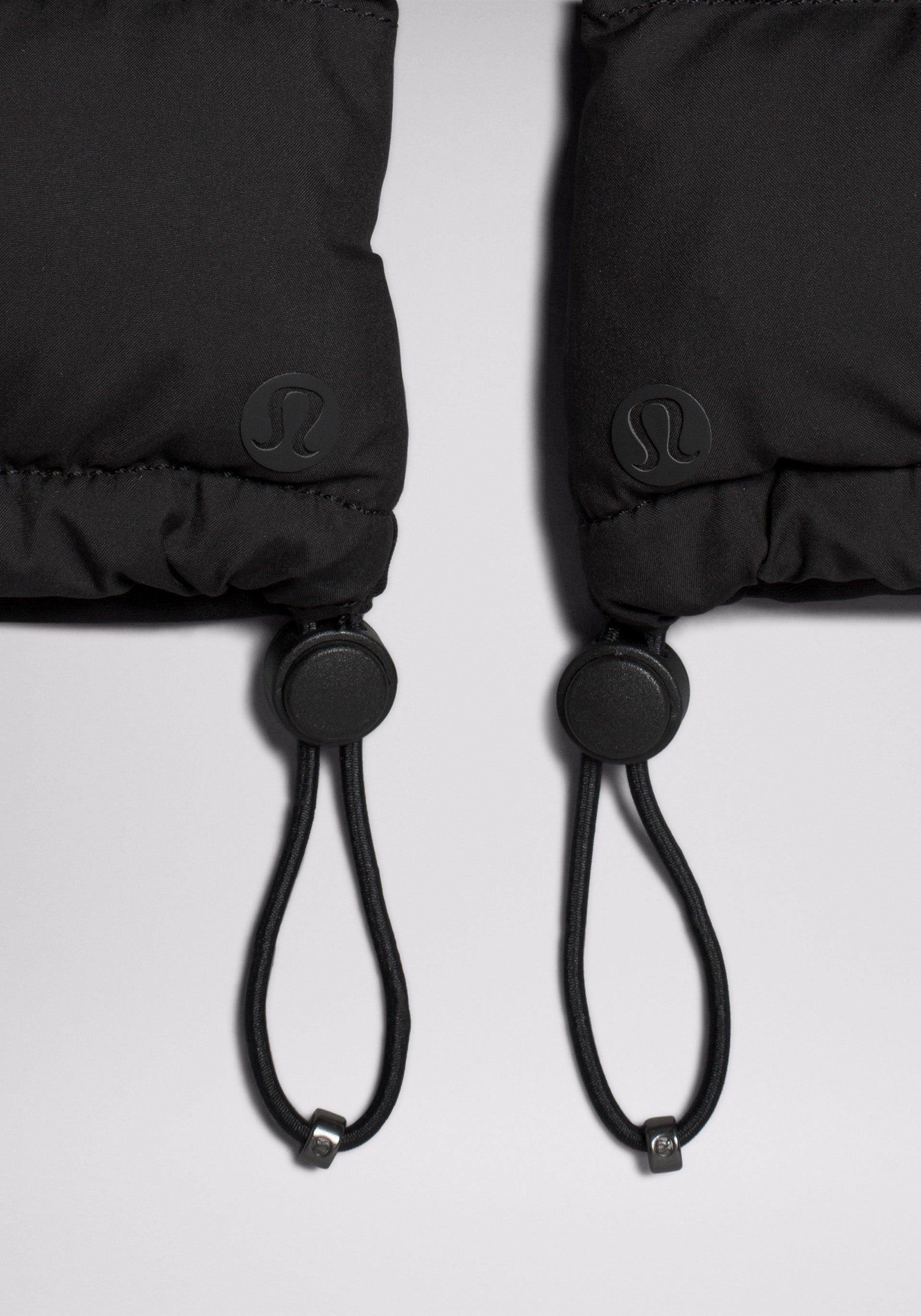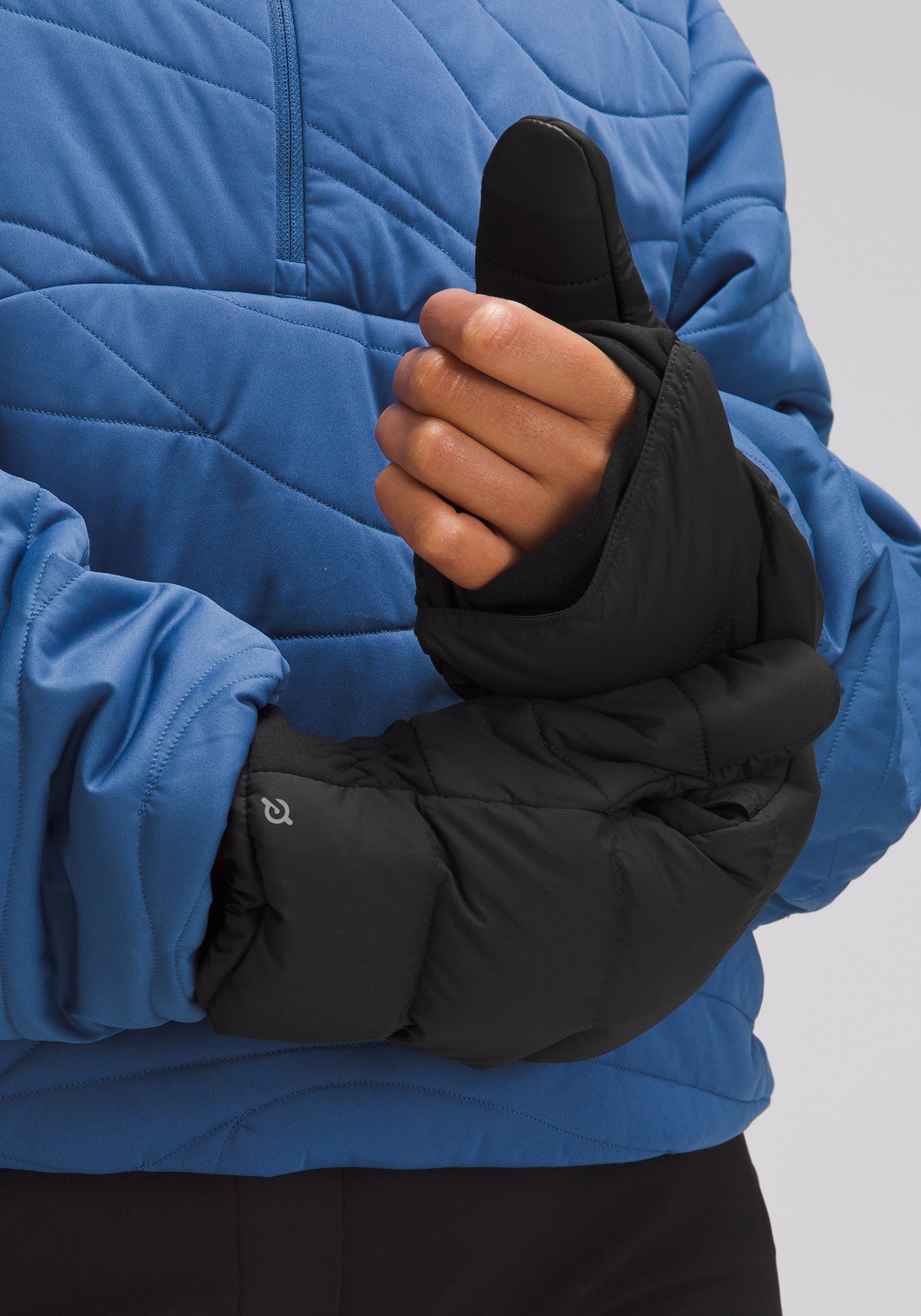- Mittens with silicone print on palm for extra grip, cinchable cuff to lock in heat, and pop-top opening so you can use use your phone