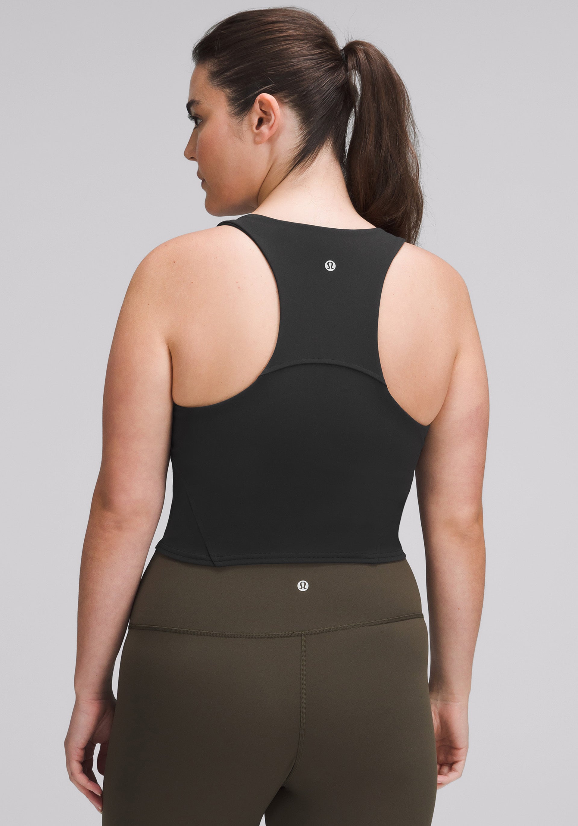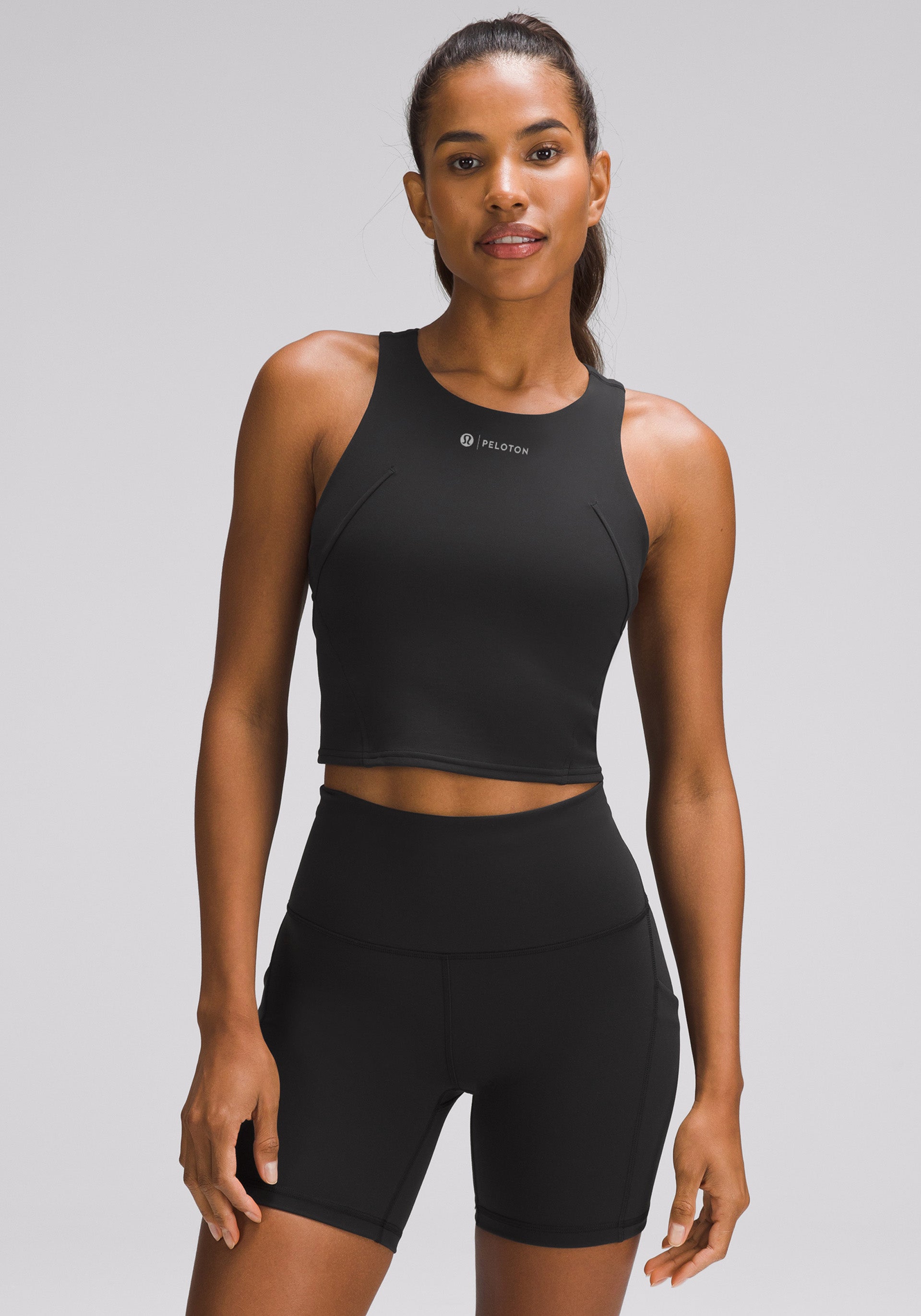 Medium support, racerback tank with built-in shelf bra for added support and pockets for removable cups