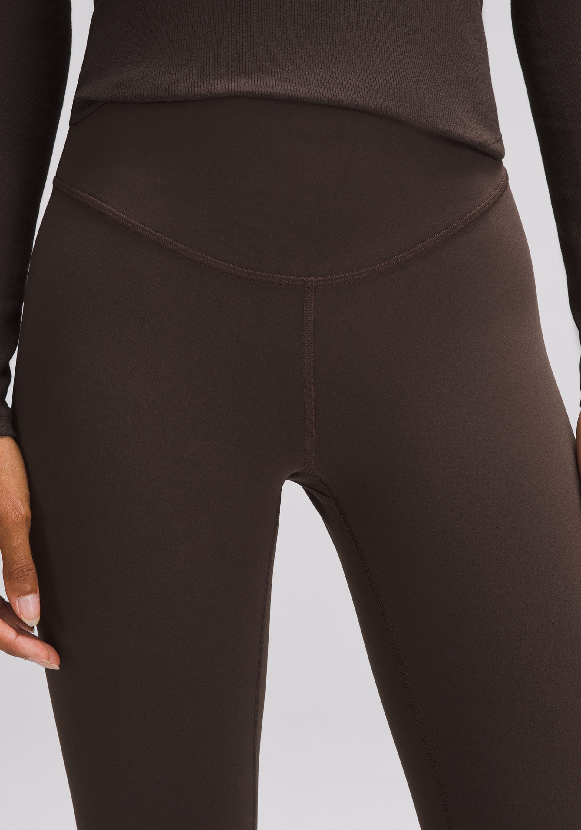 High Rise, 25” inseam legging with a curved waistband seam and no outseam for a smooth look that effortlessly transitions from sport mode to street mode.